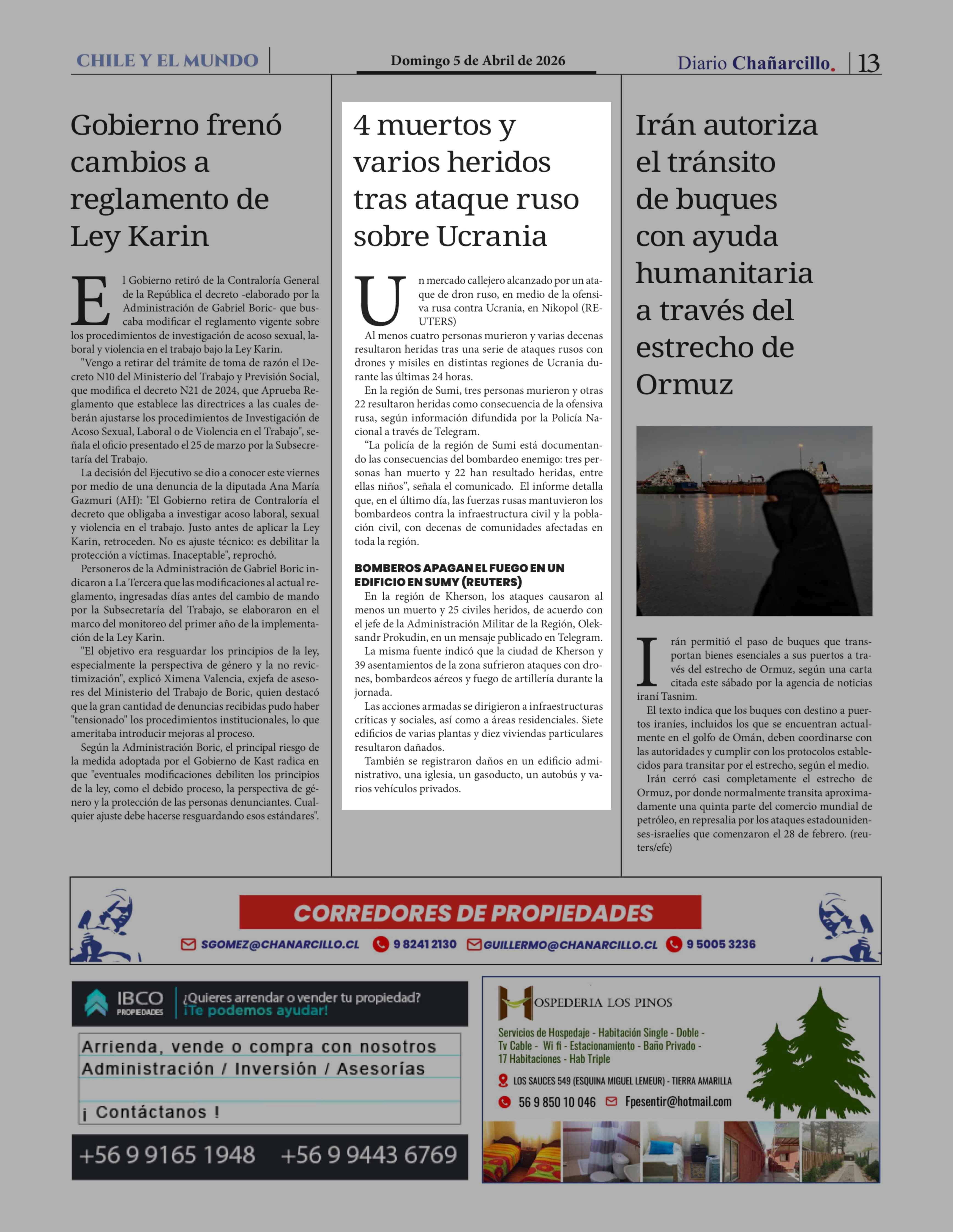 Fuente: Diario Chañarcillo (Diario Chanarcillo) Página(s): 13