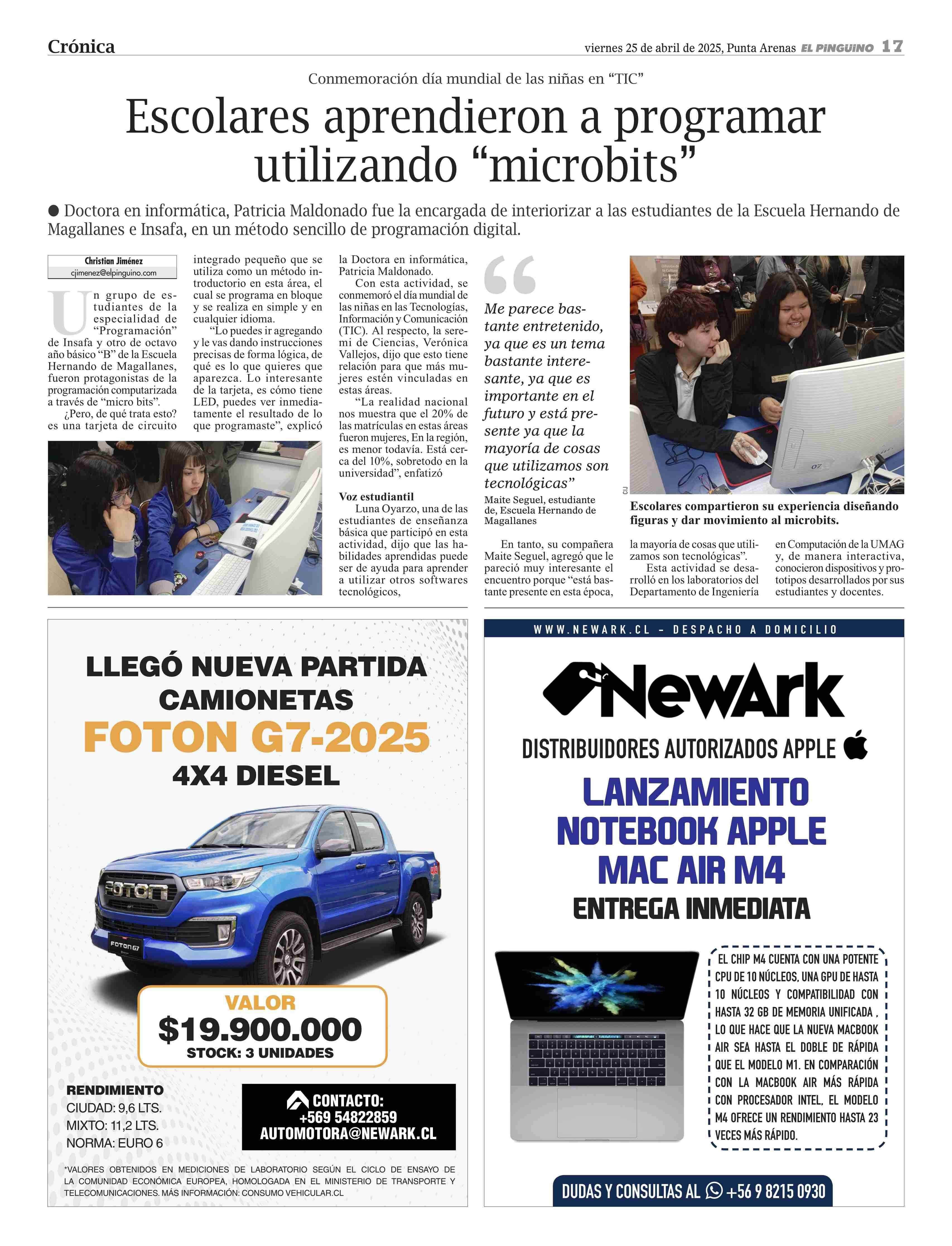 Escolares aprendieron a programar utilizando “microbits” 25-04-2025 El Pingüino |