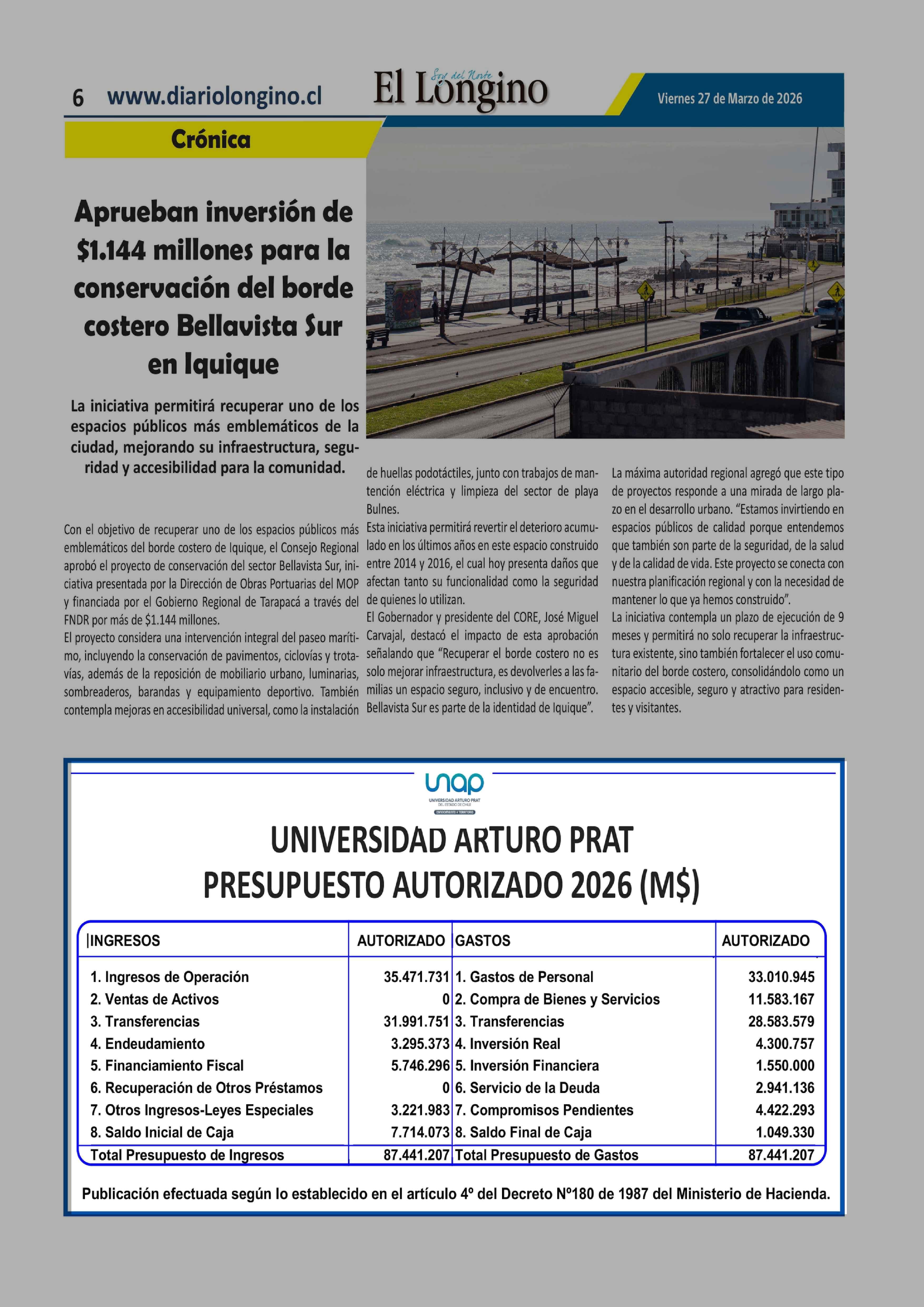 Fecha: 27-03-2026 Sector: Extractos Región: Región de Tarapacá