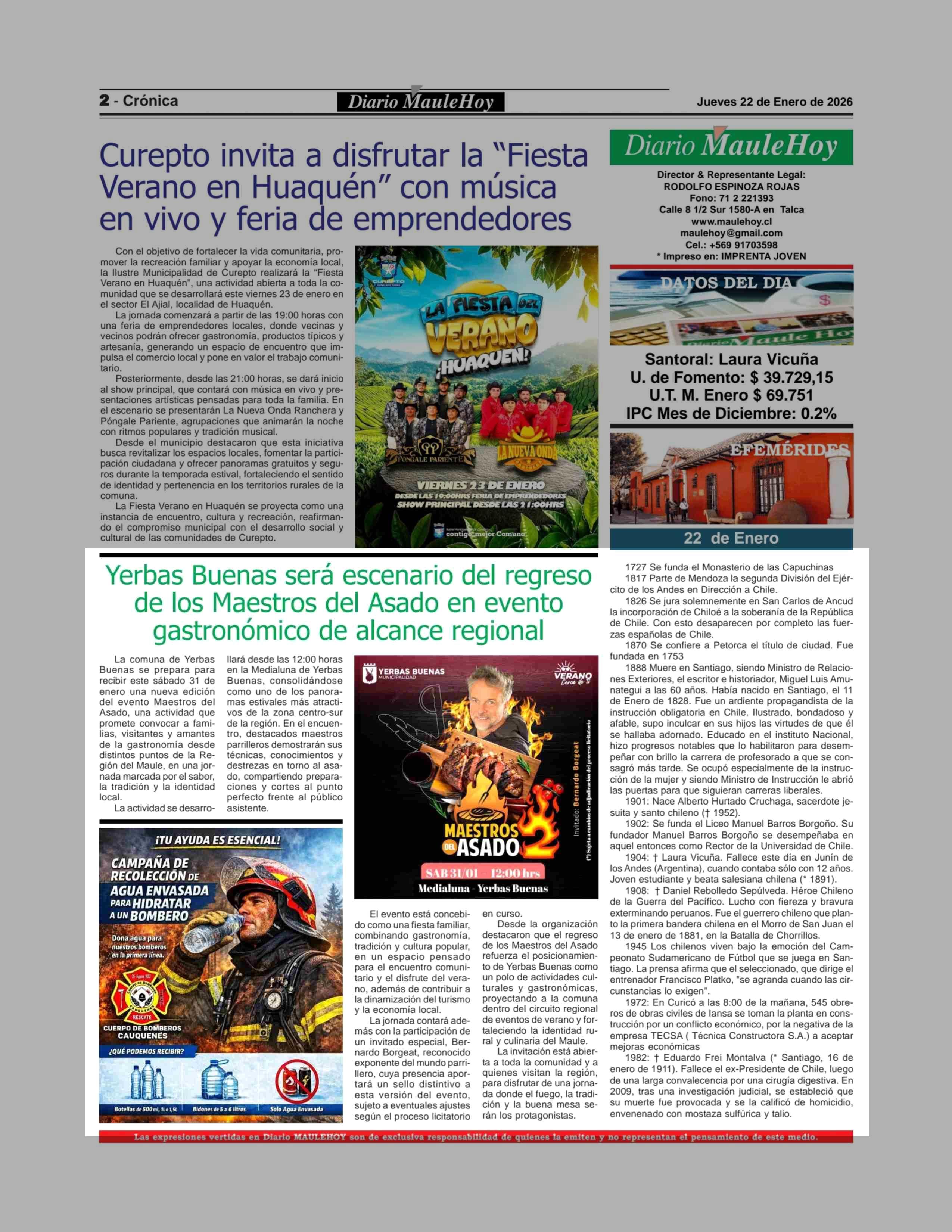 | Fecha: | 22-01-2026 | Sector: | Noticia general | Región: | Región del Maule |