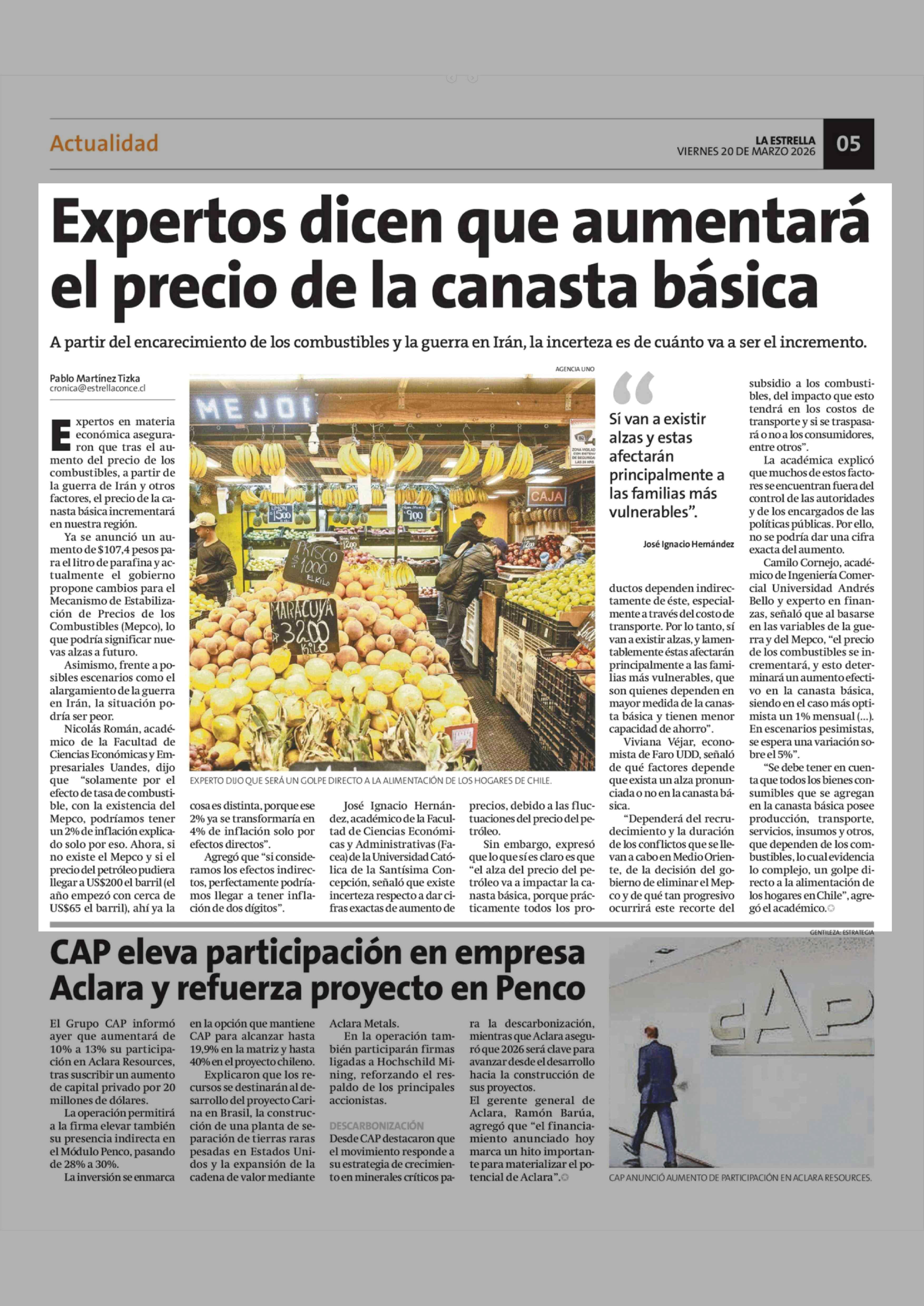 Expertos dicen que aumentará el precio de la canasta básica 20-03-2026 La Estrella de Concepción |