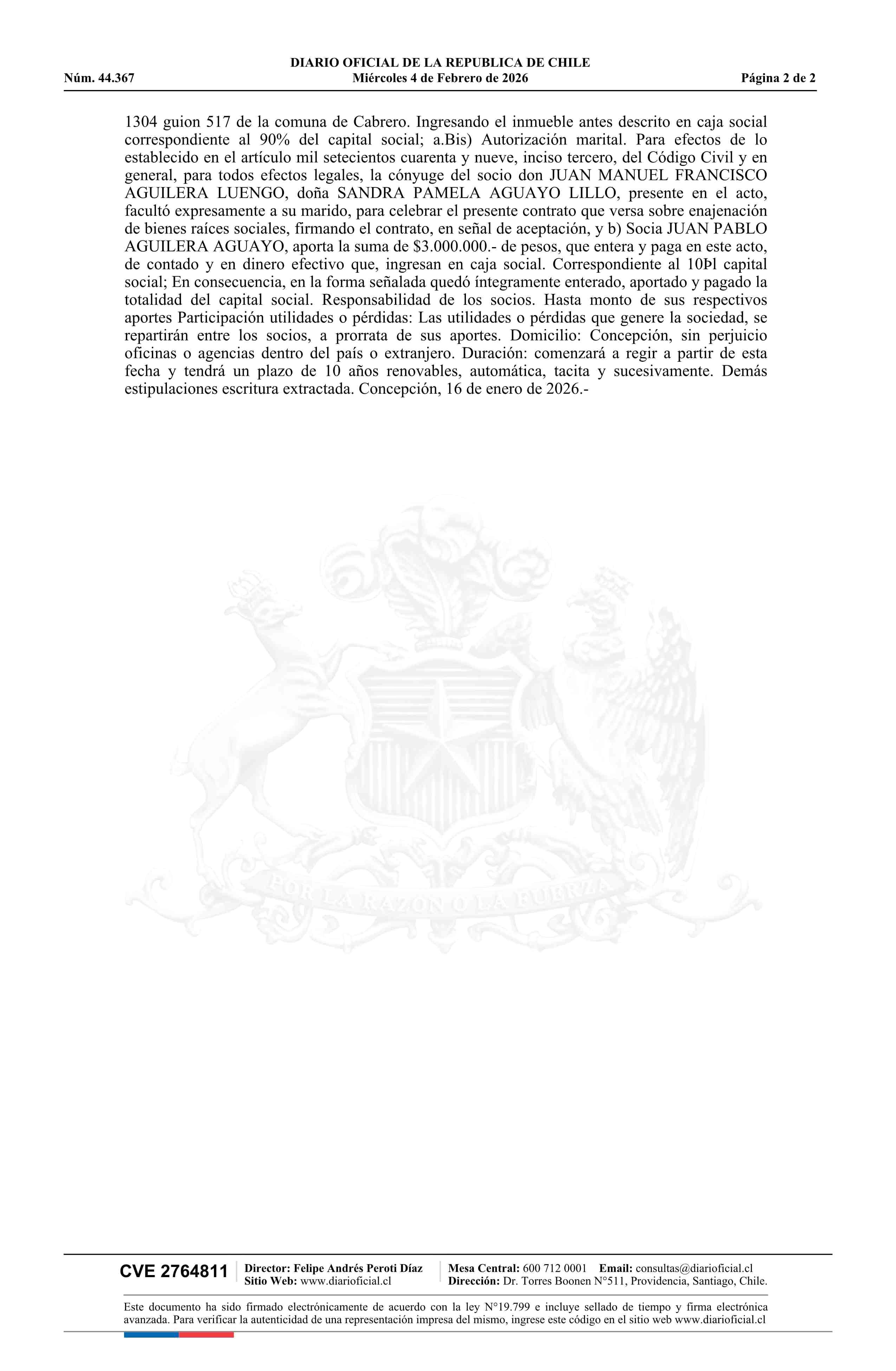 AGRÍCOLA E INVERSIONES VETEK LIMITADA 04-02-2026 Diario Oficial Edición Electrónica |