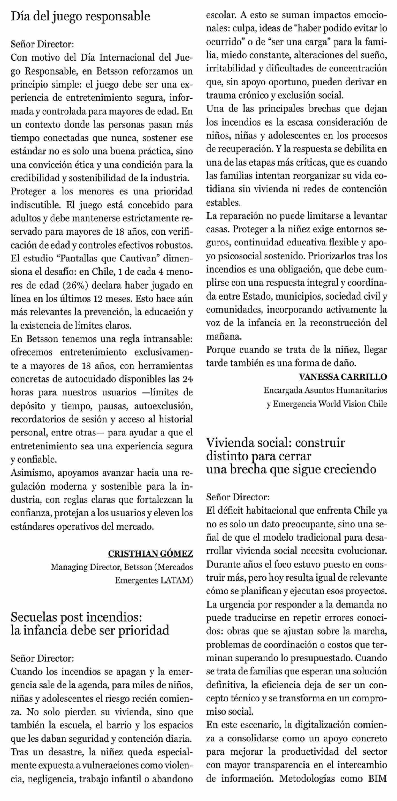 Título: Cartas: Secuelas post incendios: la infancia debe ser prioridad