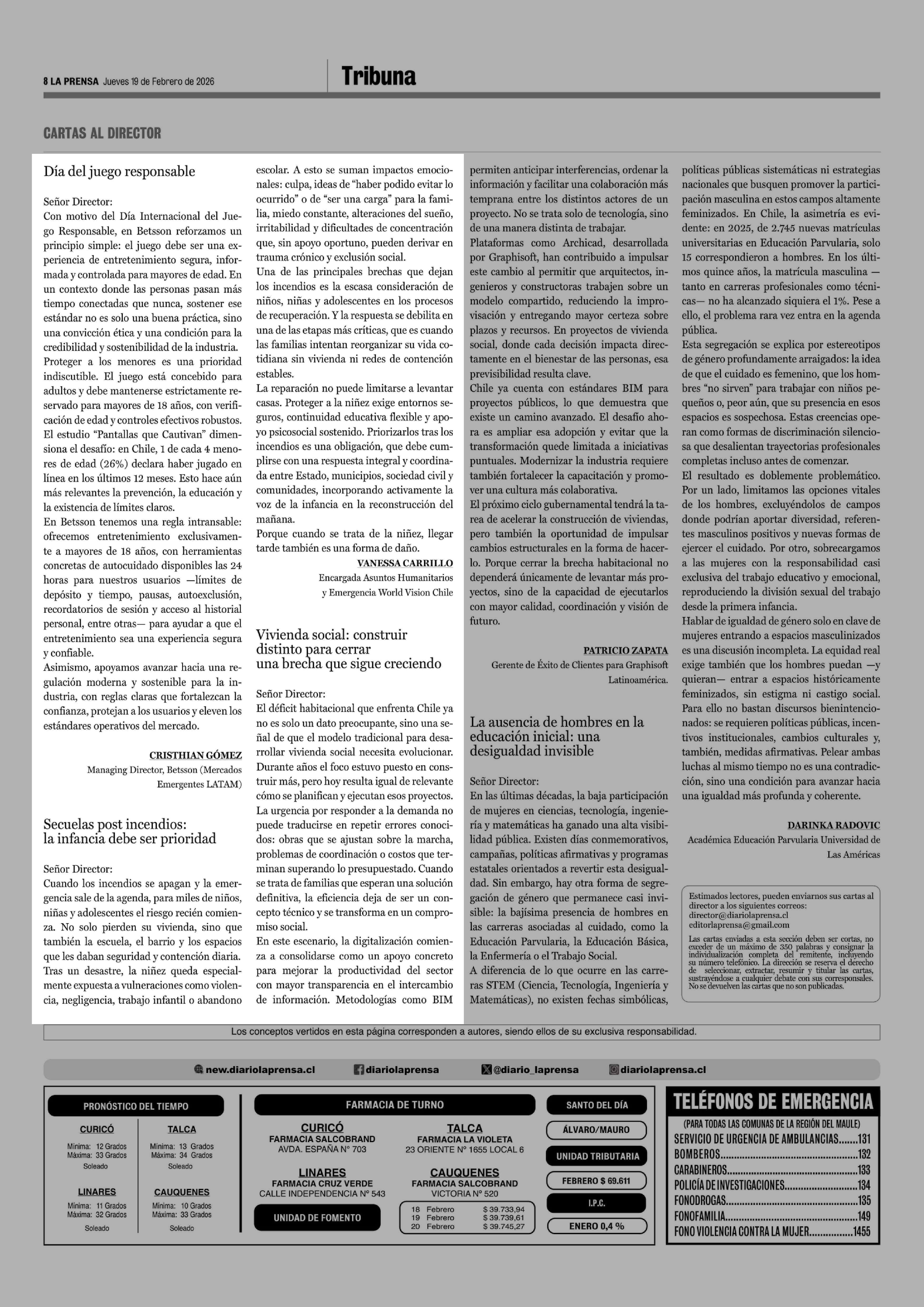 19-02-2026 La Prensa de Curicó
