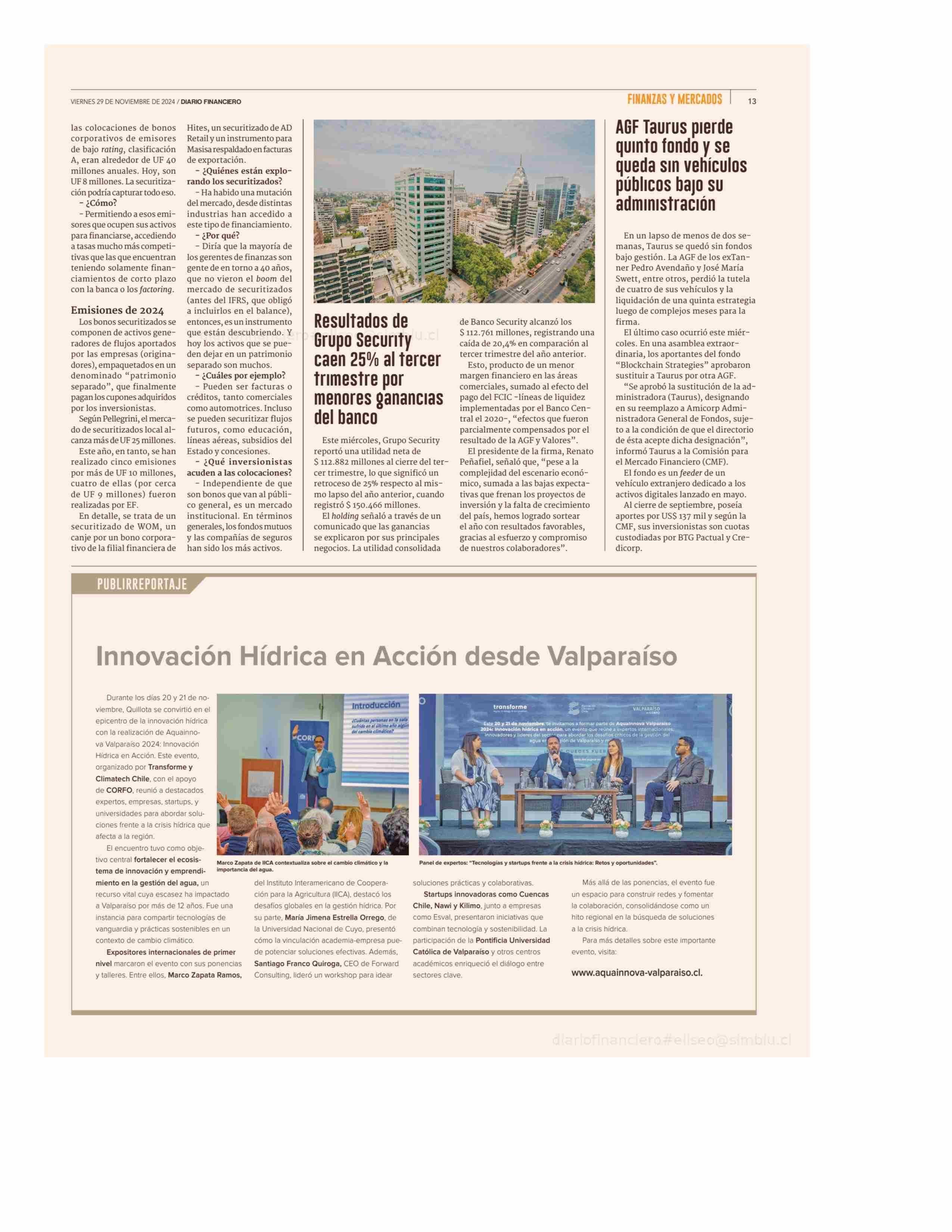Innovación Hídrica en Acción desde Valparaíso 29-11-2024 Diario Financiero |