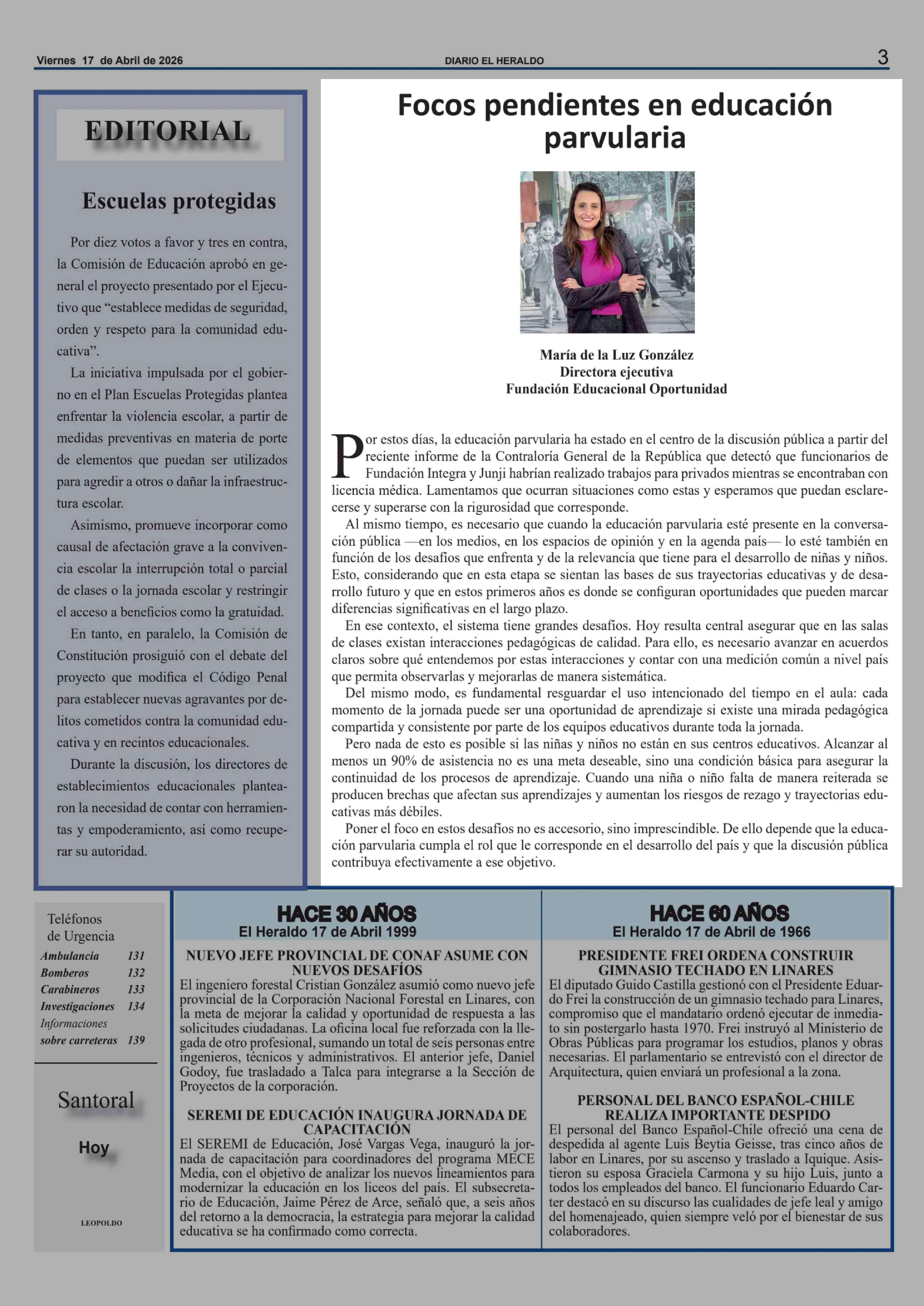 Columnas de Opinión: Focos pendientes en educación parvularia 17-04-2026 El Heraldo |
