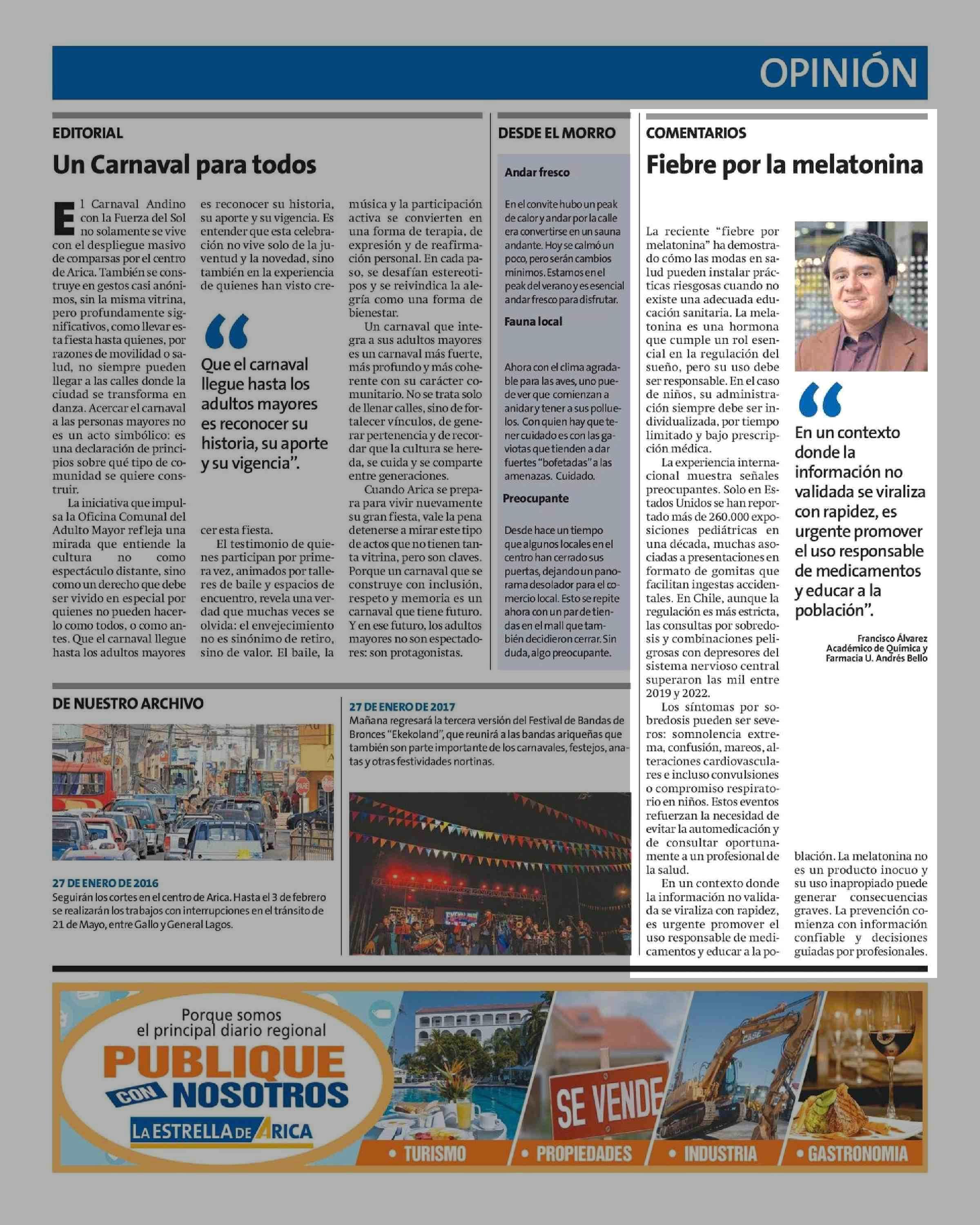 Columnas de Opinión: Fiebre por la melatonina 27-01-2026 La Estrella de Arica |