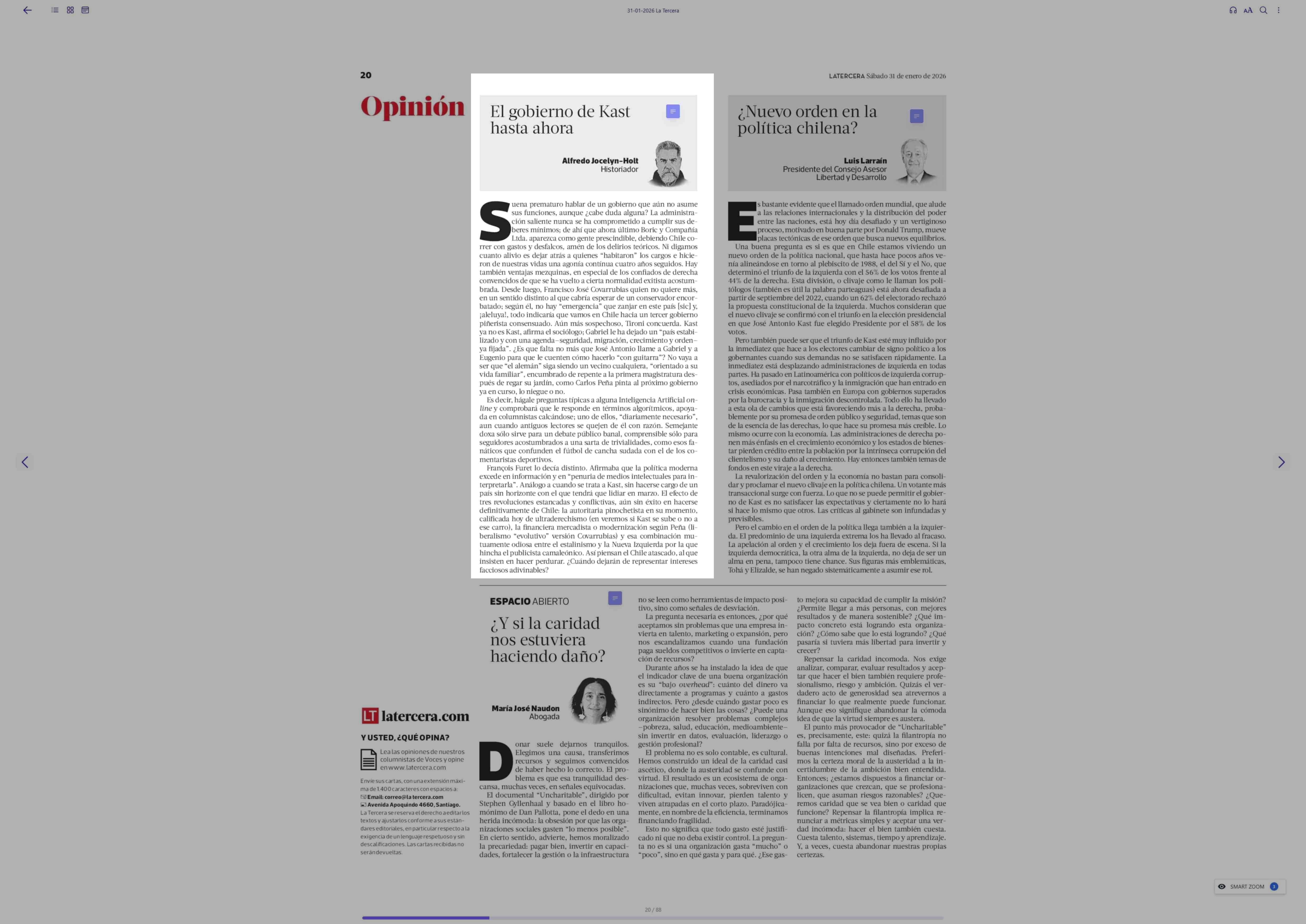 COLUMNA DE OPINIÓN: El gobierno de Kast hasta ahora 31-01-2026 La Tercera |