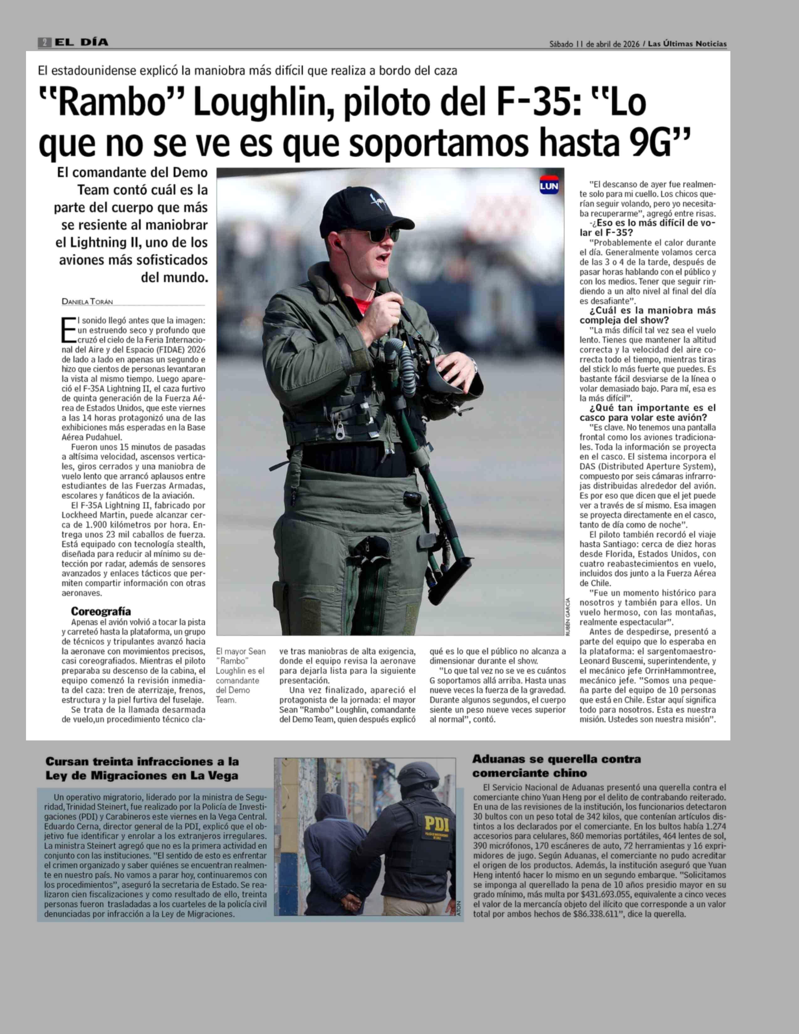 Título: "Rambo" Loughlin, piloto del F-35: "Lo que no se ve es que soportamos hasta 9G"