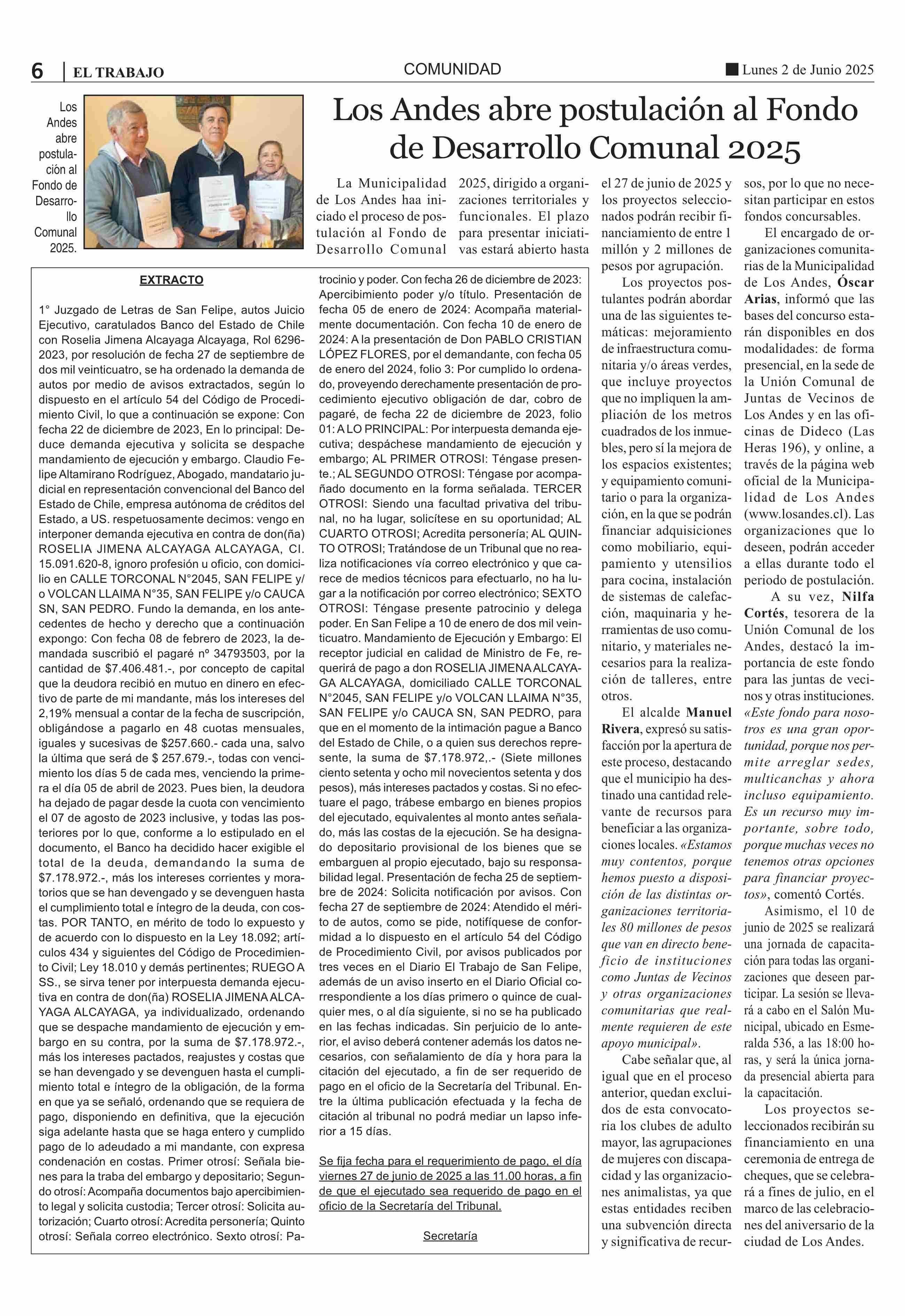 Los Andes abre postulación al Fondo de Desarrollo Comunal 2025 02-06-2025 El Trabajo |