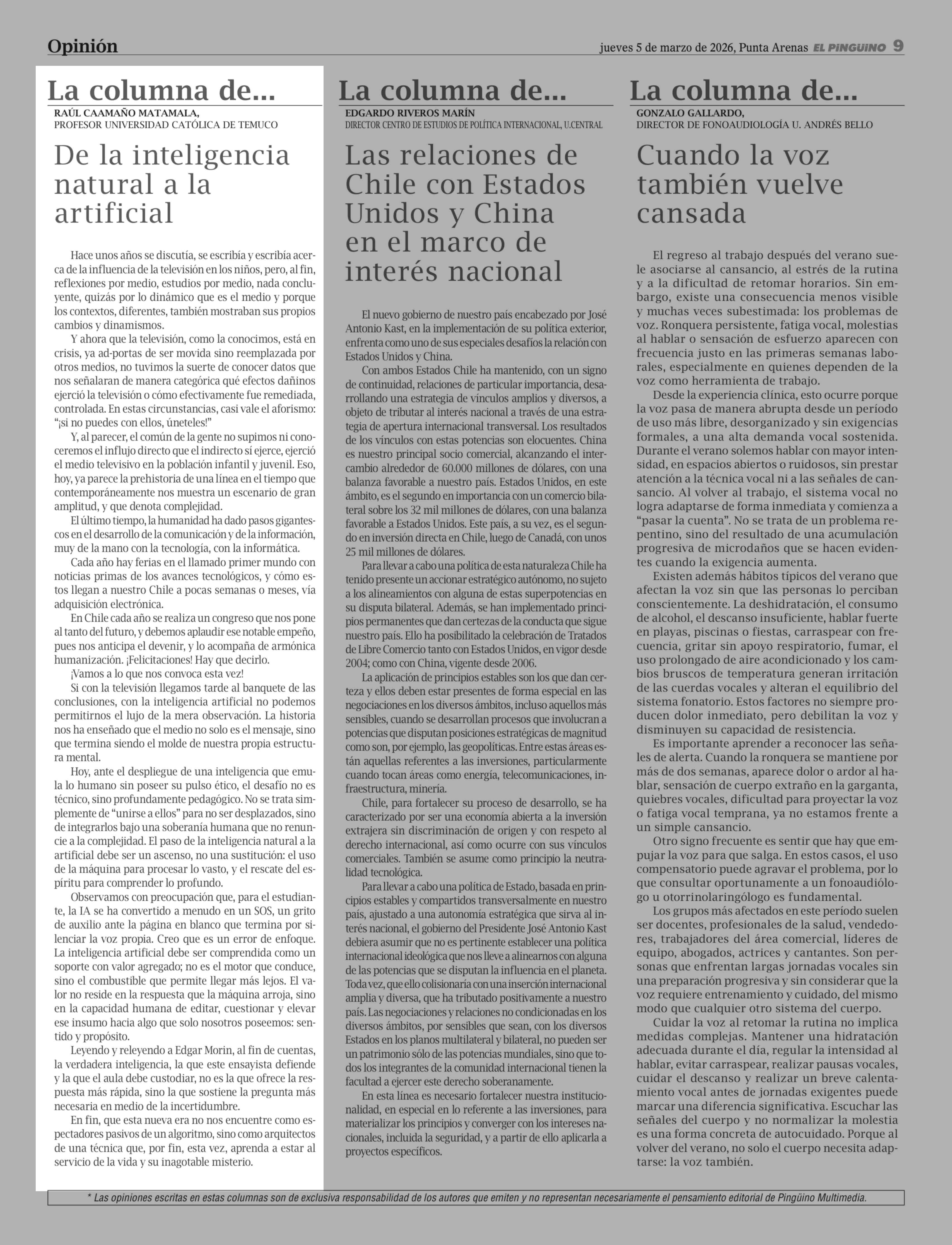 | Fecha: | 05-03-2026 | Sector: | Columnas de Opinión | Región: | Región de Magallanes y de la Antártica Chilena |