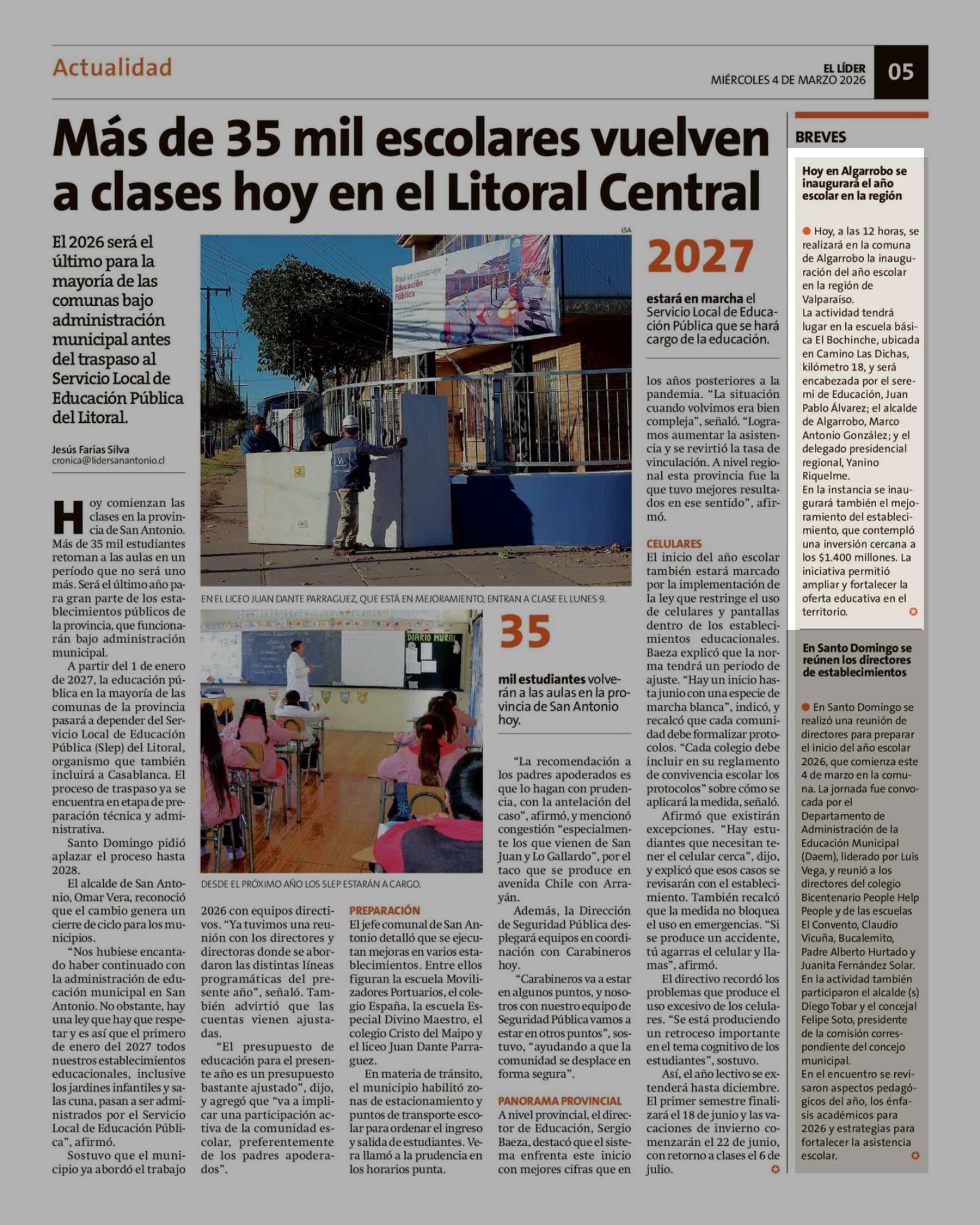 Título: Hoy en Algarrobo se inaugurará el año escolar en la región