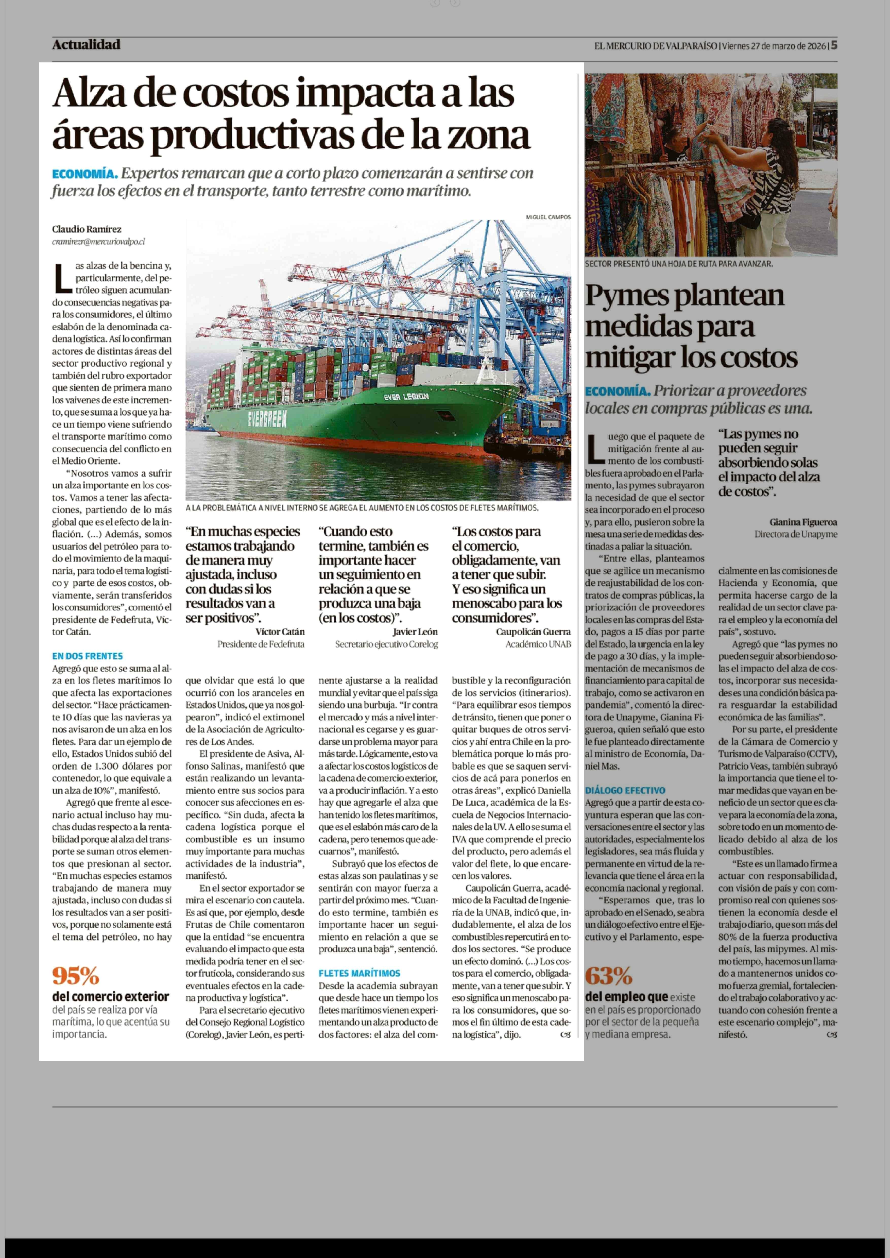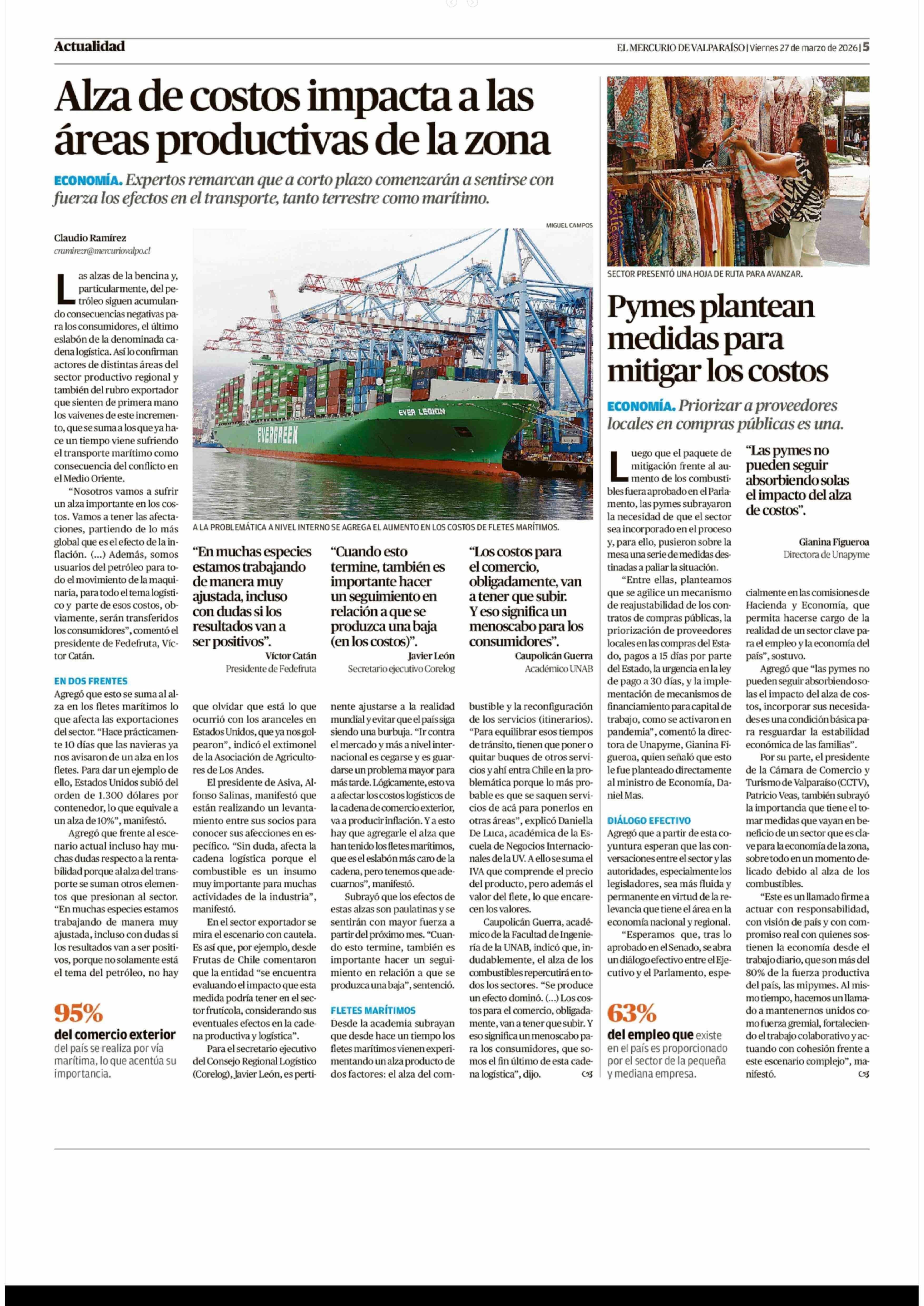 Alza de costos impacta a las áreas productivas de la zona 27-03-2026 El Mercurio de Valparaíso |