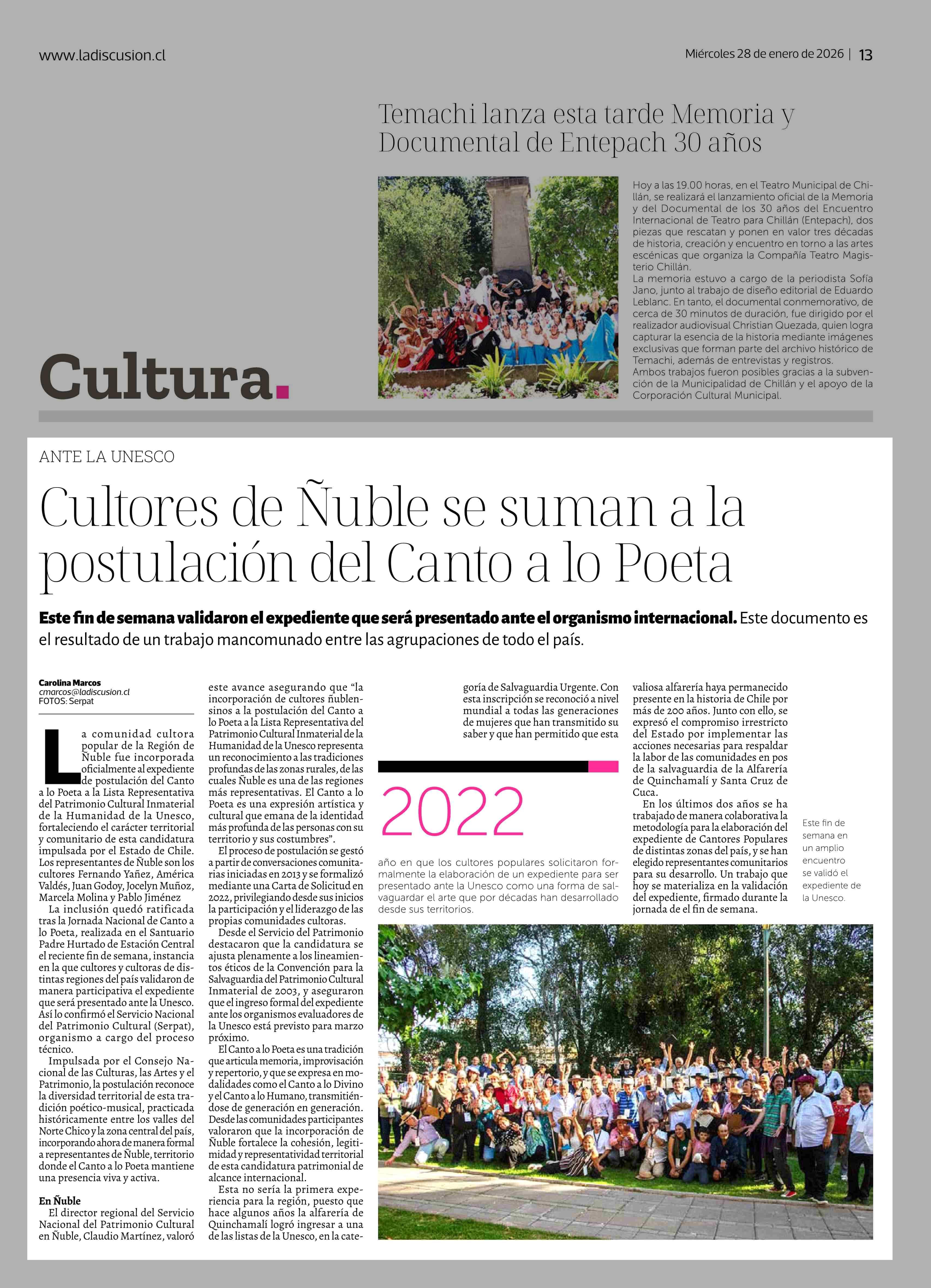 Fecha: 28-01-2026 Sector: Noticia general Región: Región del Ñuble