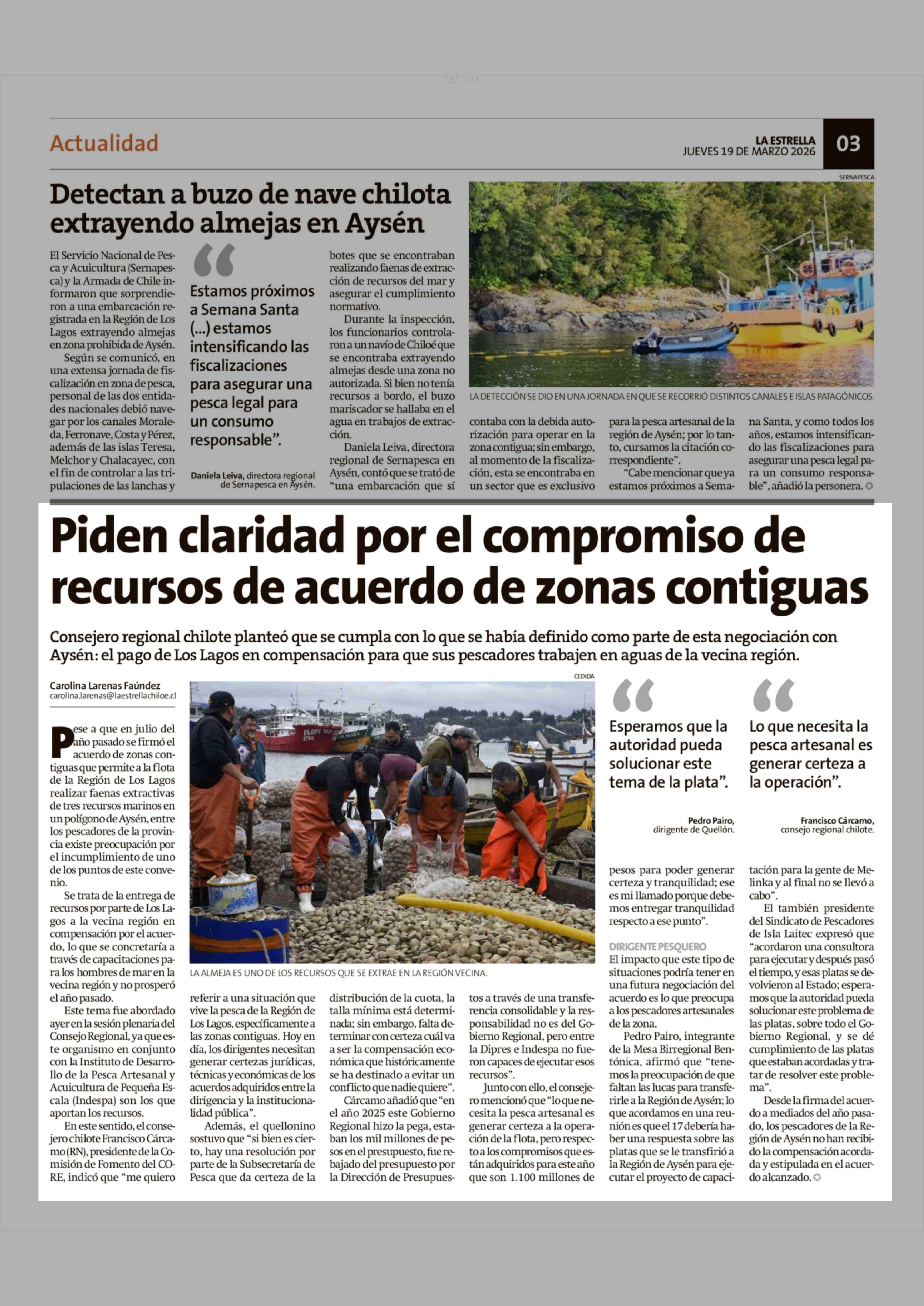 Piden claridad por el compromiso de recursos de acuerdo de zonas contiguas 19-03-2026 La Estrella de Chiloé |
