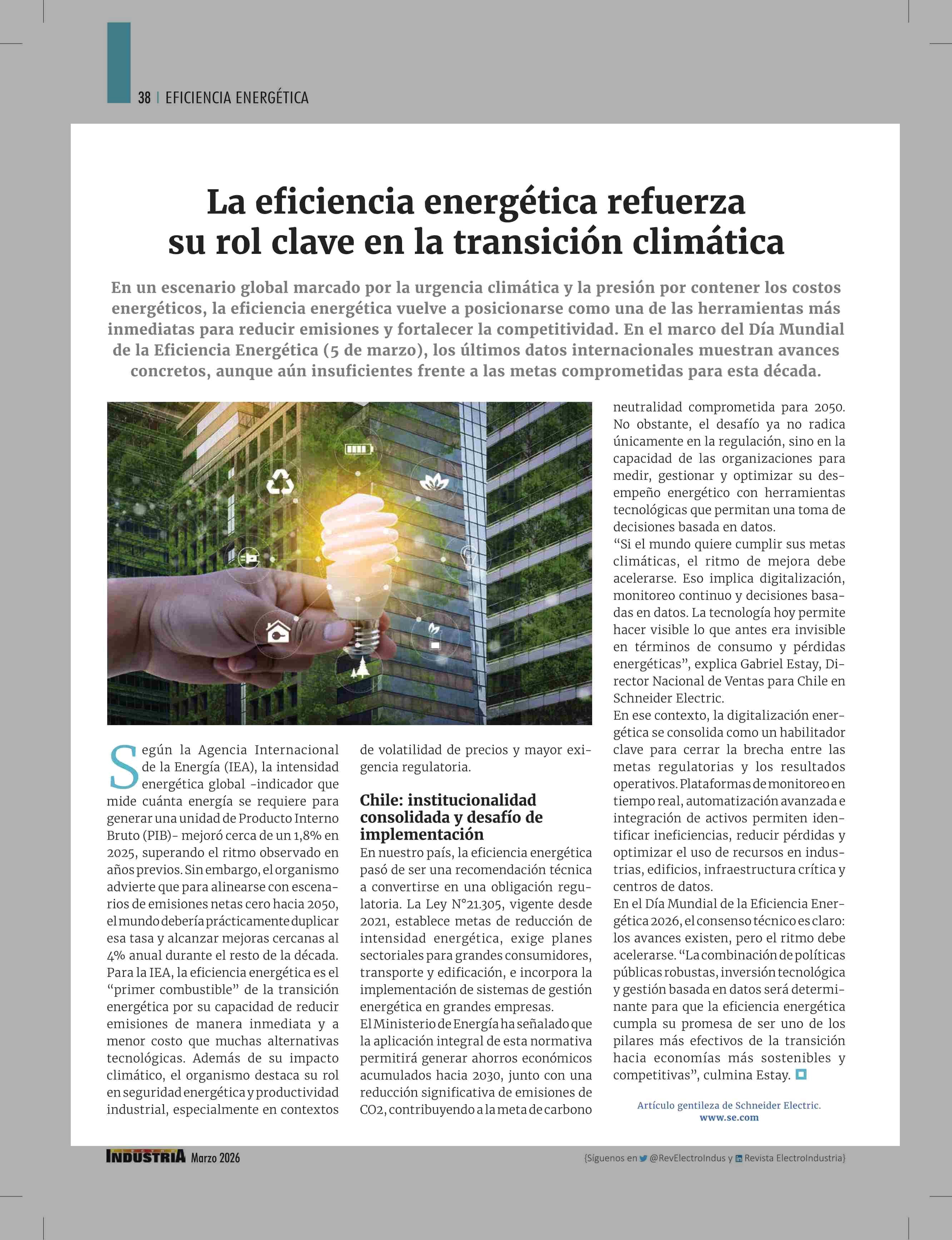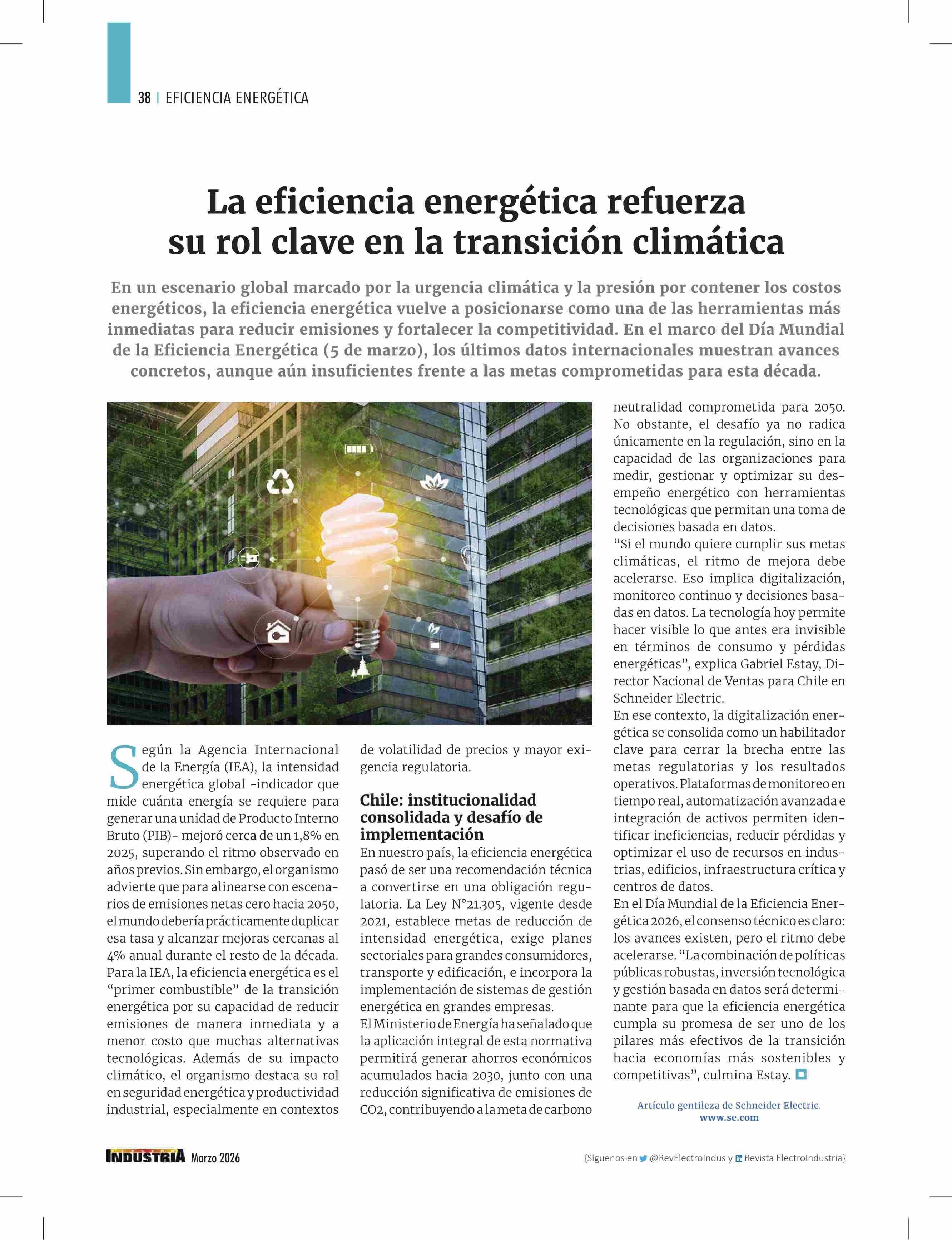La eficiencia energética refuerza su rol clave en la transición climática 25-03-2026 Revista Electro Industria |