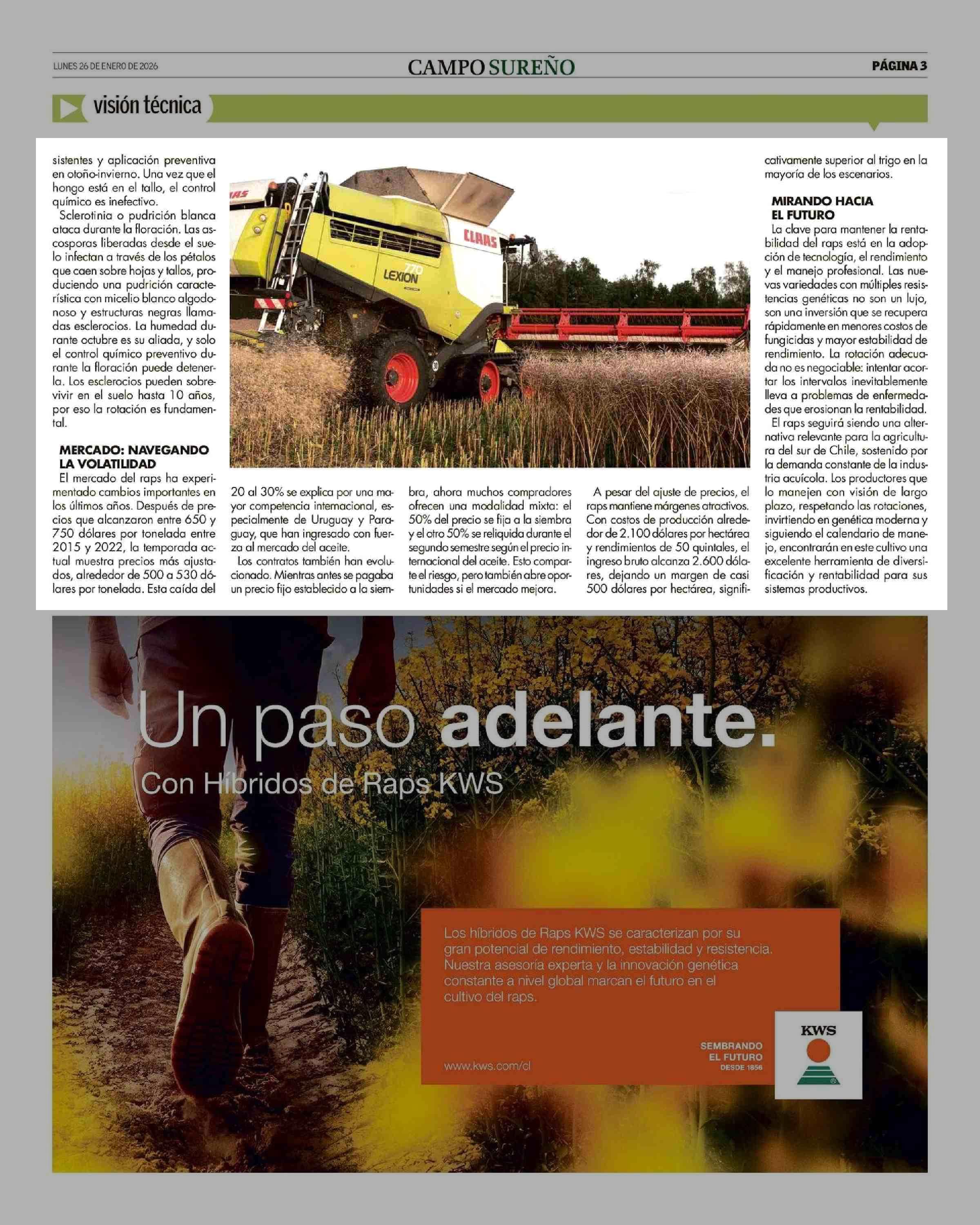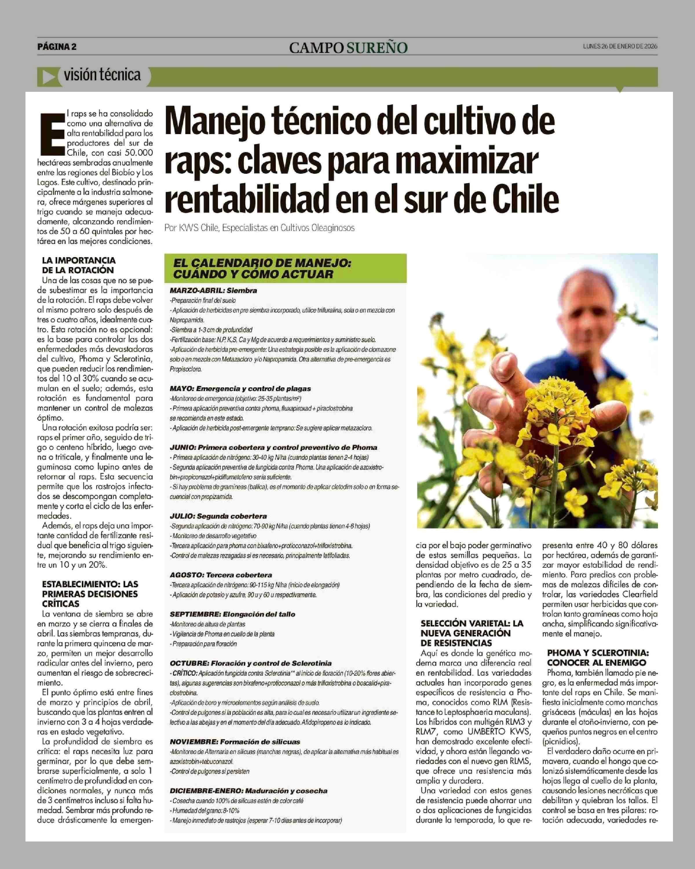 Título: Manejo técnico del cultivo de raps: claves para maximizar rentabilidad en el sur de Chile