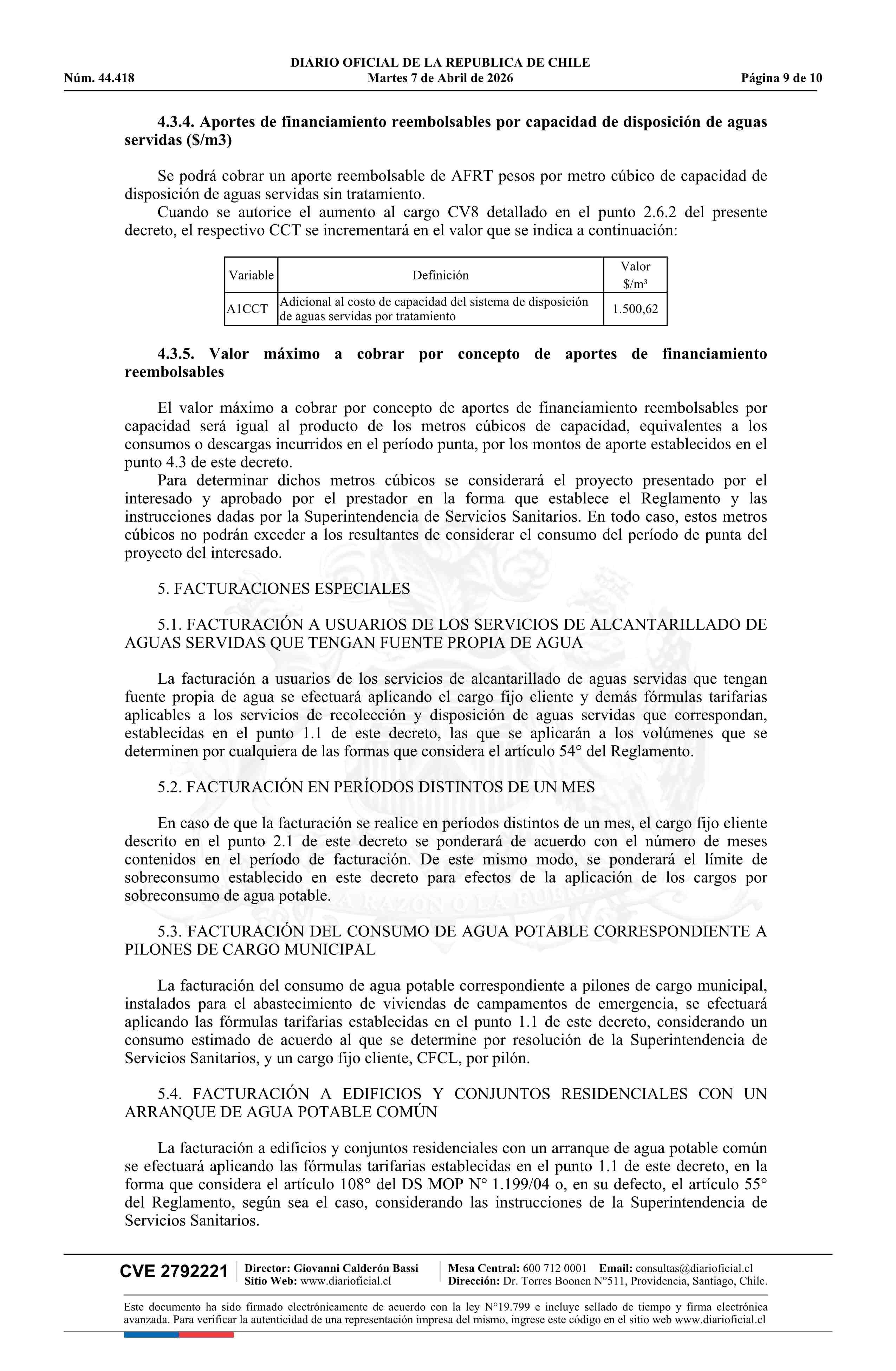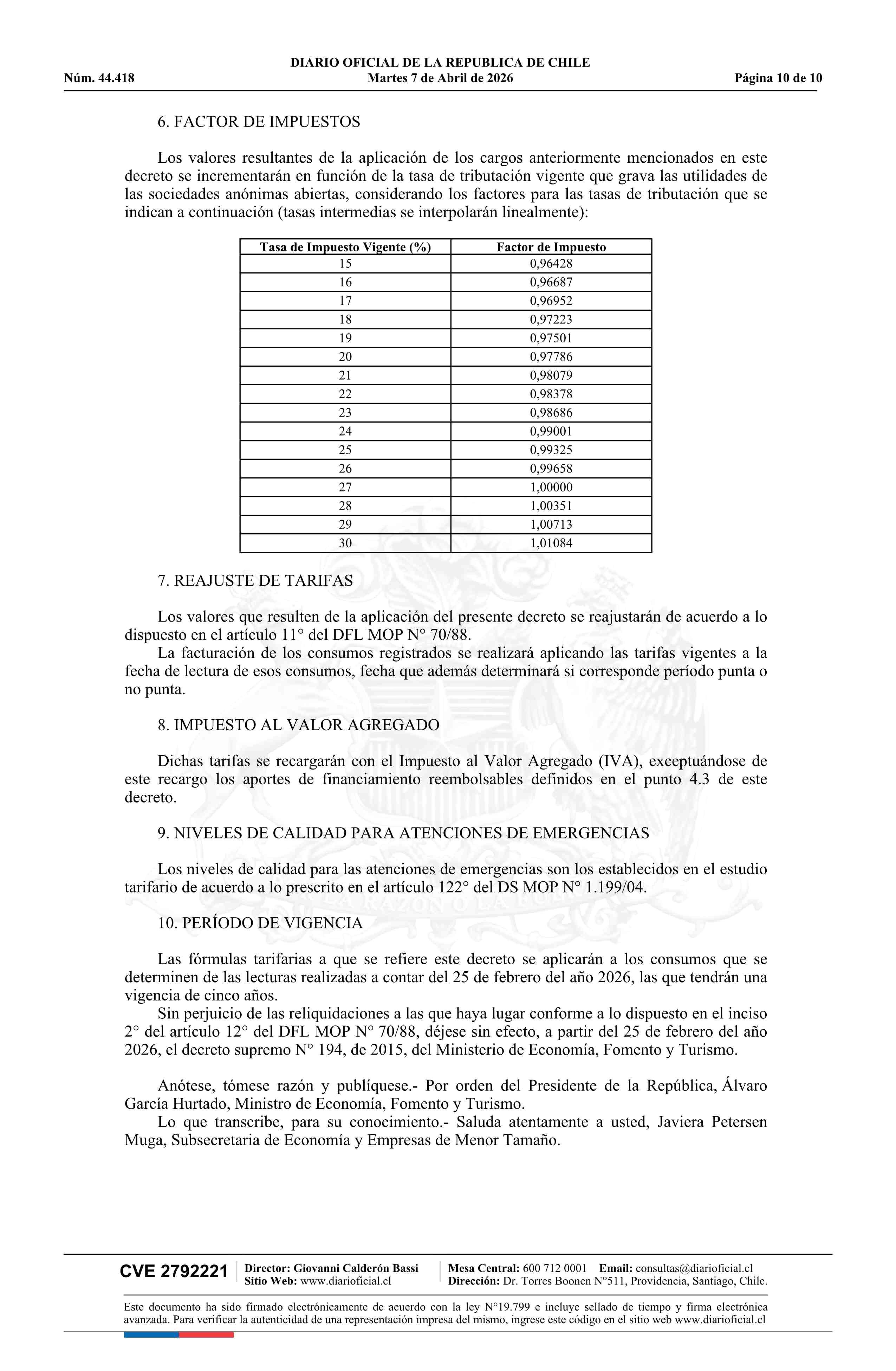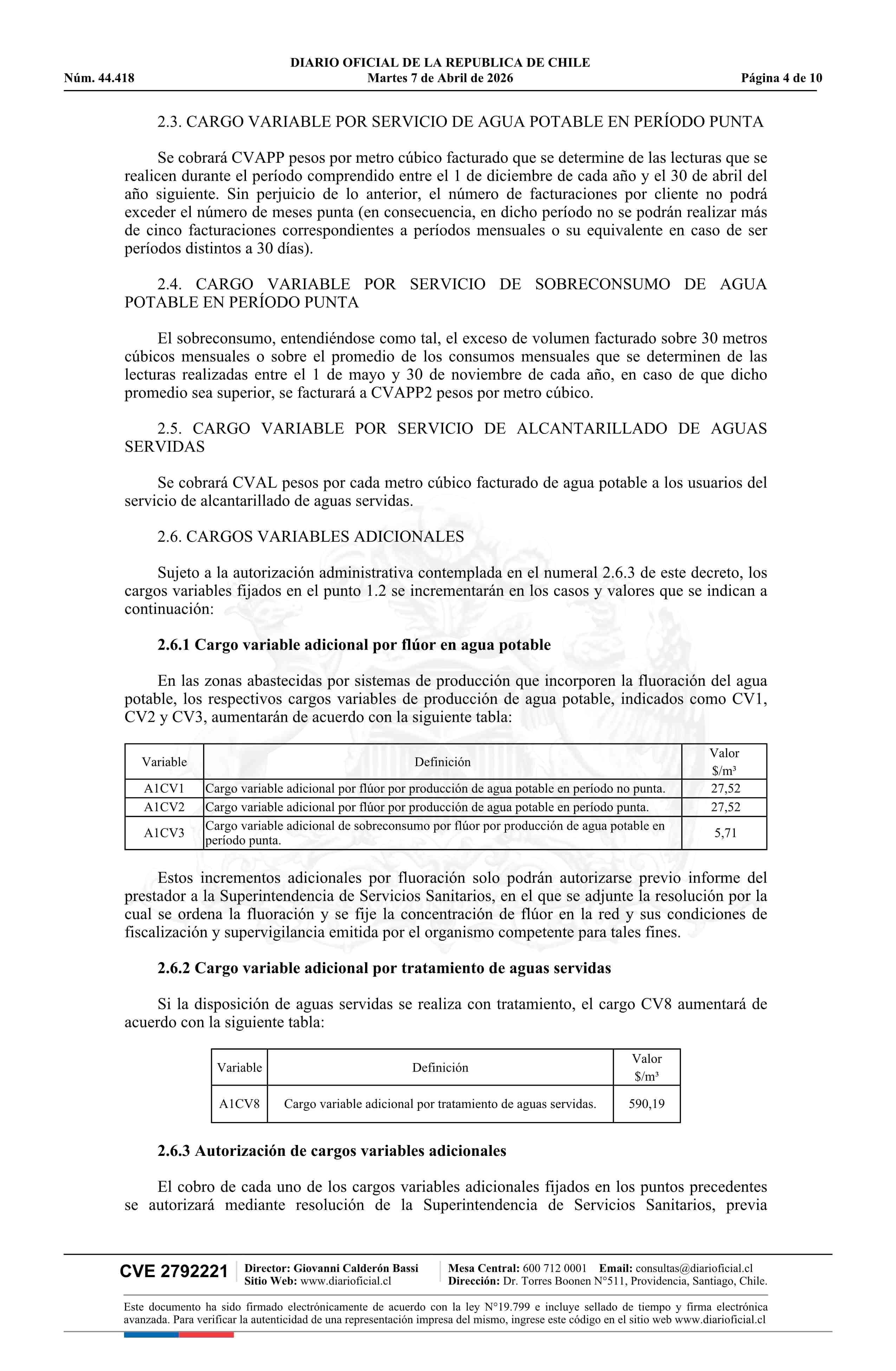 | Título: | Decreto número 13, de 2026.- Fija fórmulas tarifarias de los servicios de producción y distribución de agua potable y recolección y disposición de aguas servidas para el área denominada Sector Alto de Zapallar, comuna de Curicó, Región del Maule, de la empresa Aguas San Pedro S.A. |