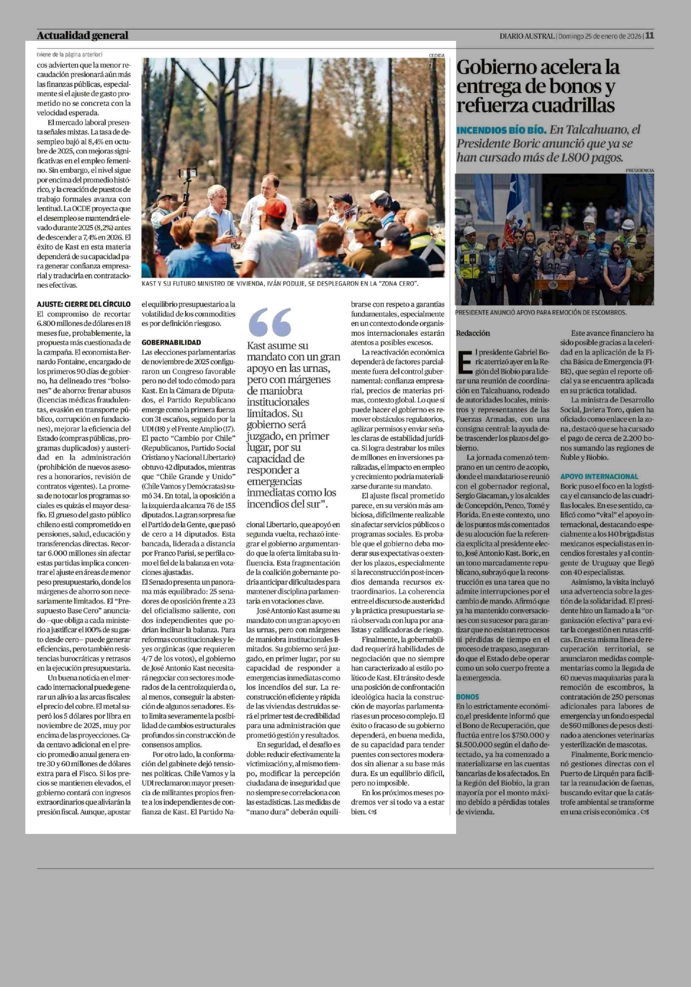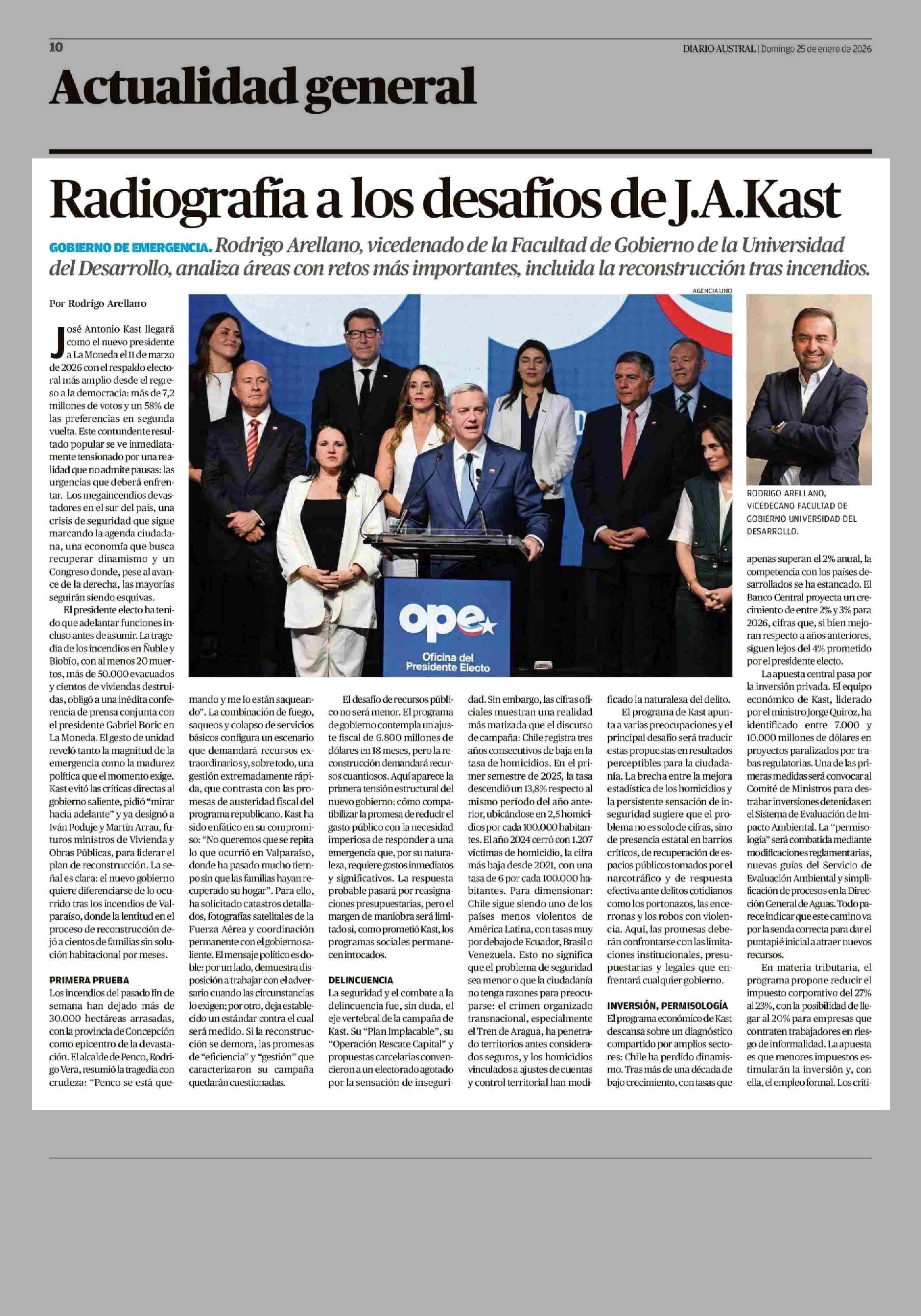 Radiografia a los desafíos de J.A.Kast 25-01-2026 Diario Austral Región de Los Ríos |