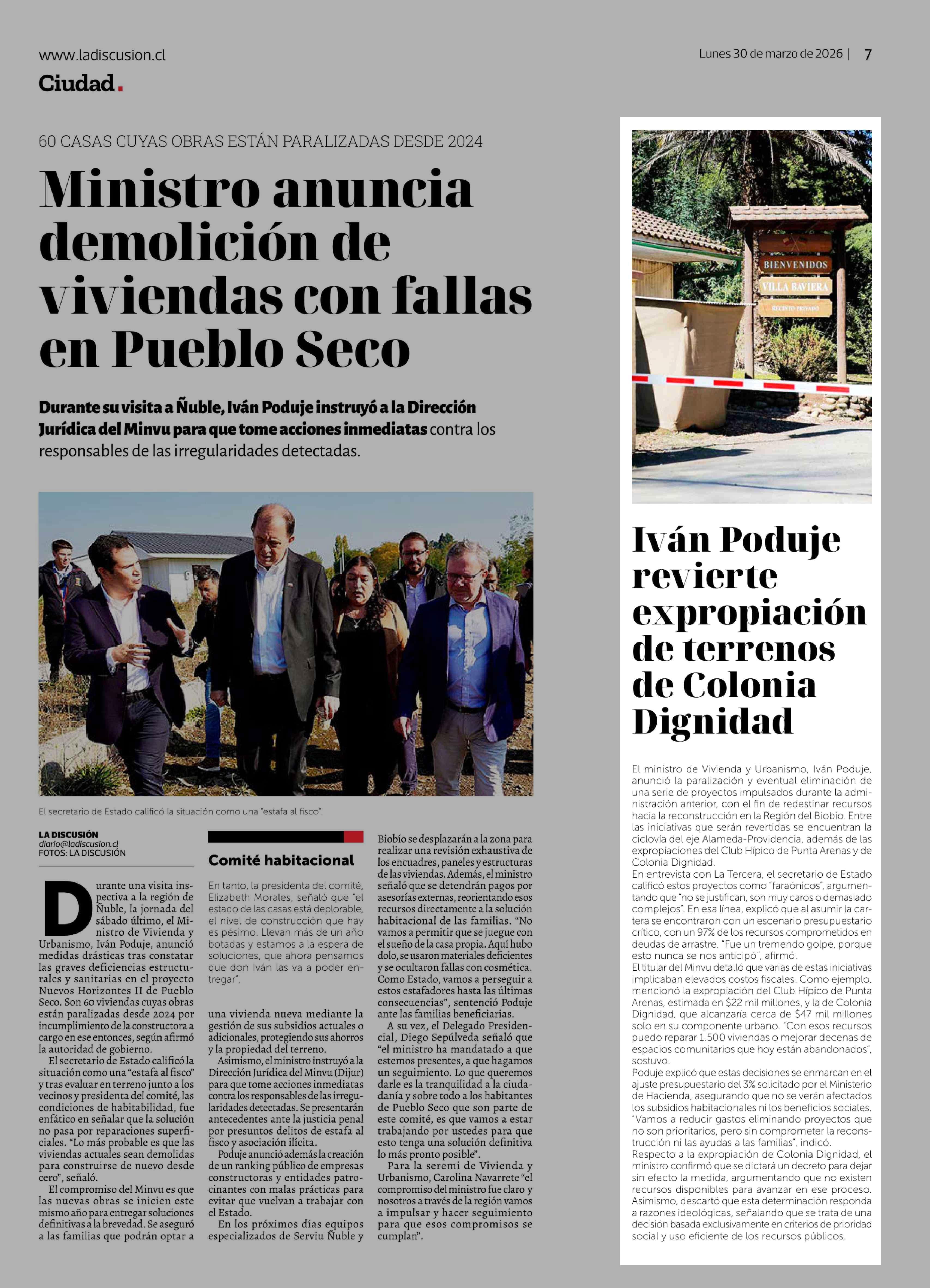 Iván Poduje revierte expropiación de terrenos de Colonia Dignidad 30-03-2026 La Discusión |