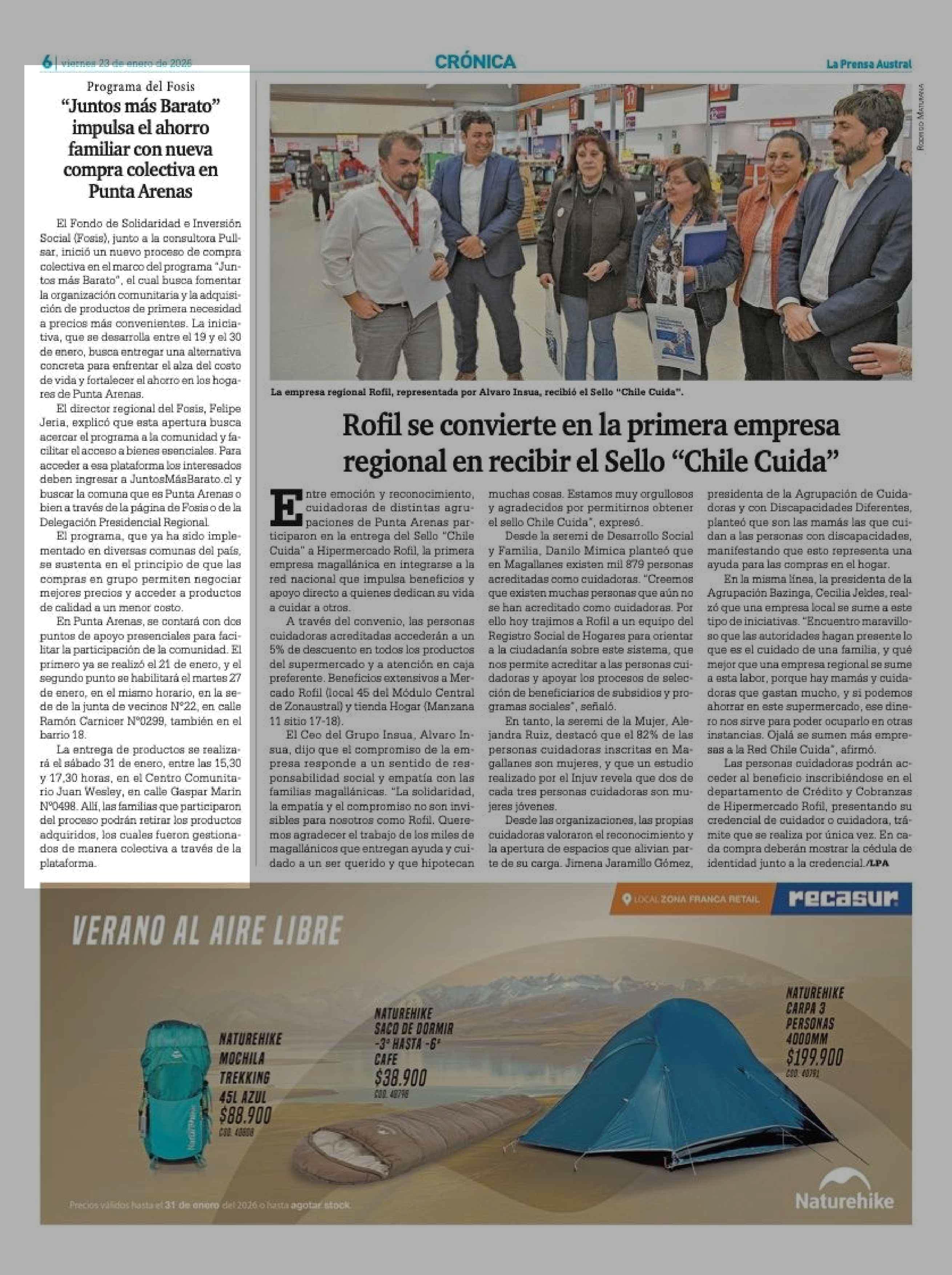 Título: "Juntos más Barato" impulsa el ahorro familiar con nueva compra colectiva en Punta Arenas