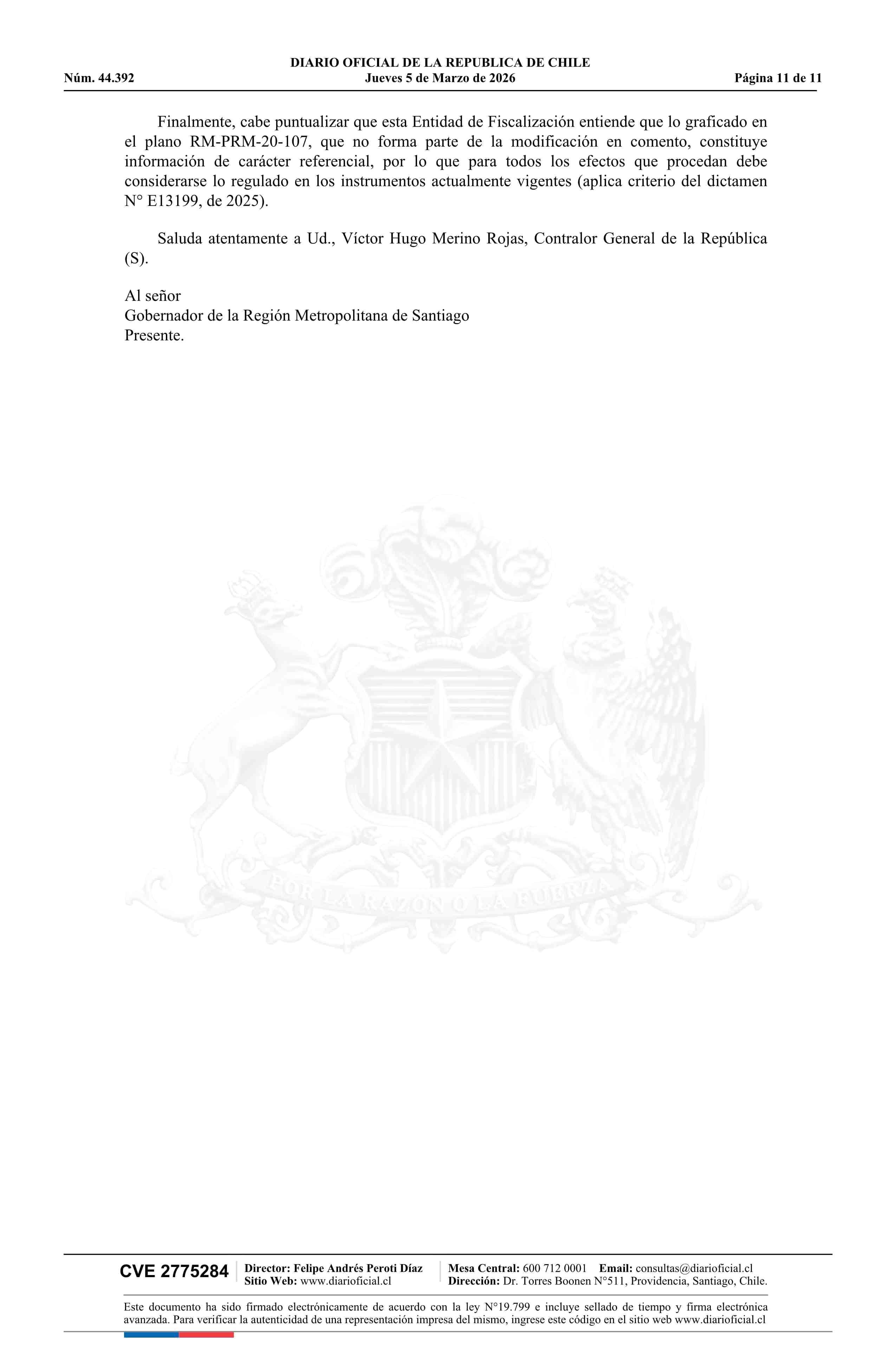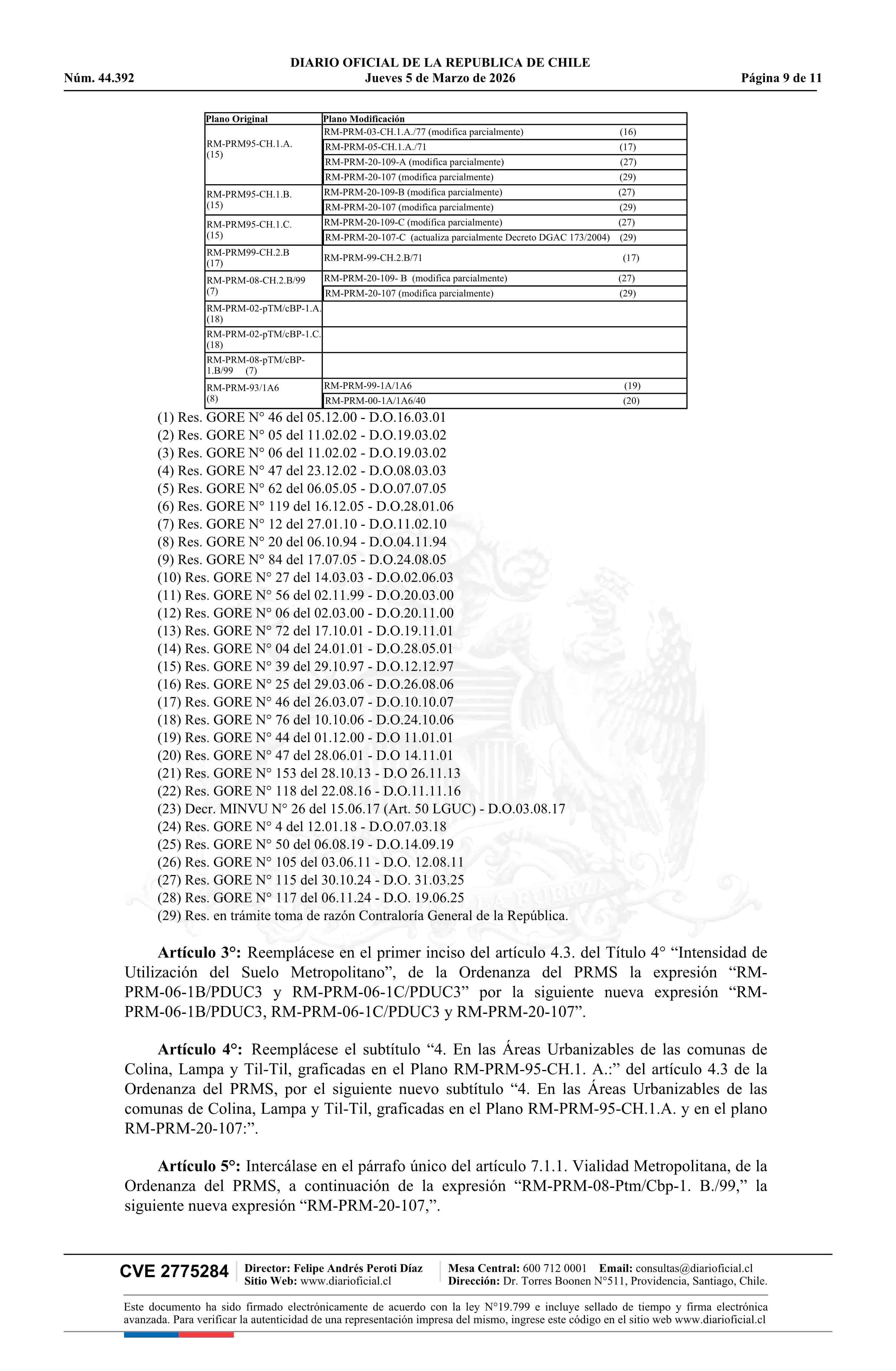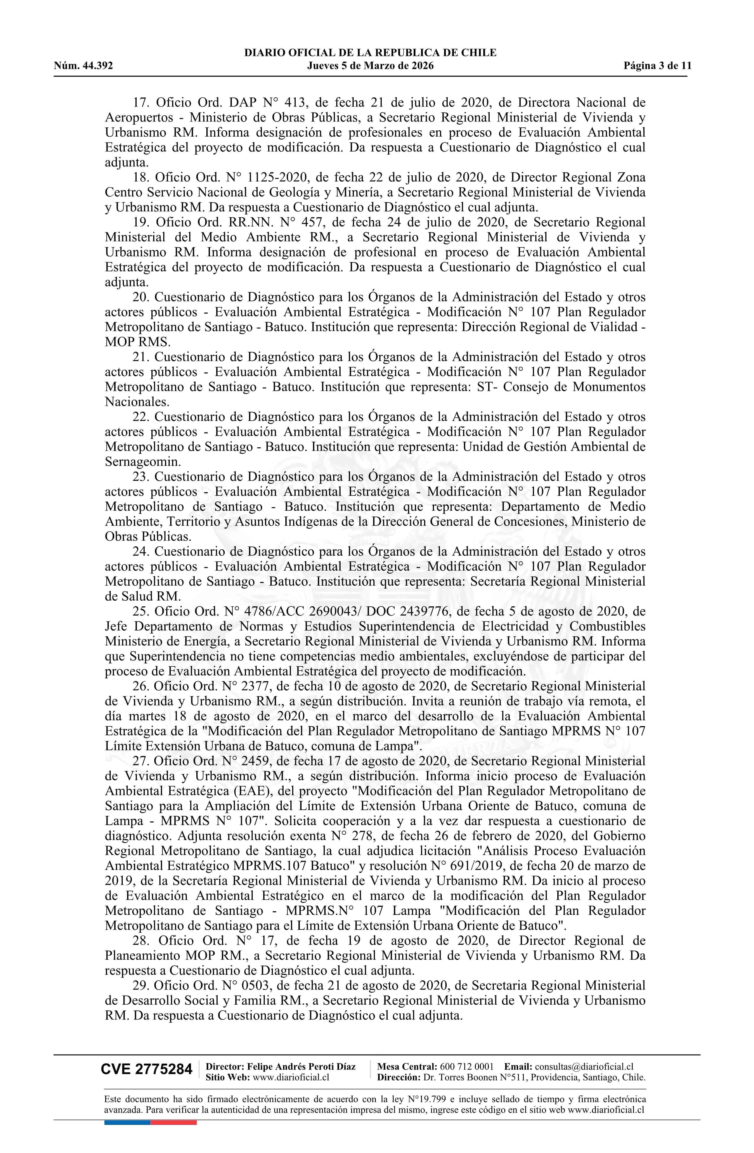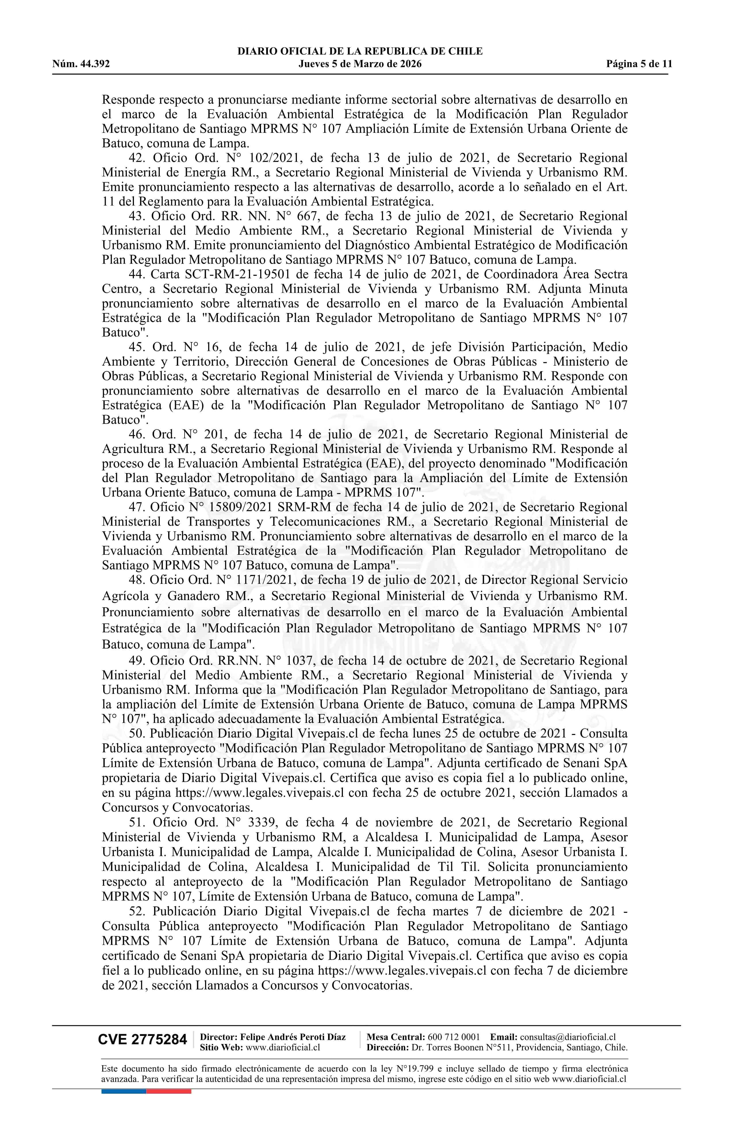 Resolución número 92, de 2025.- Modifica Plan Regulador Metropolitano de Santiago en los términos que indica en el límite de la extensión urbana de Batuco, comuna de Lampa 05-03-2026 Diario Oficial Edición Electrónica |