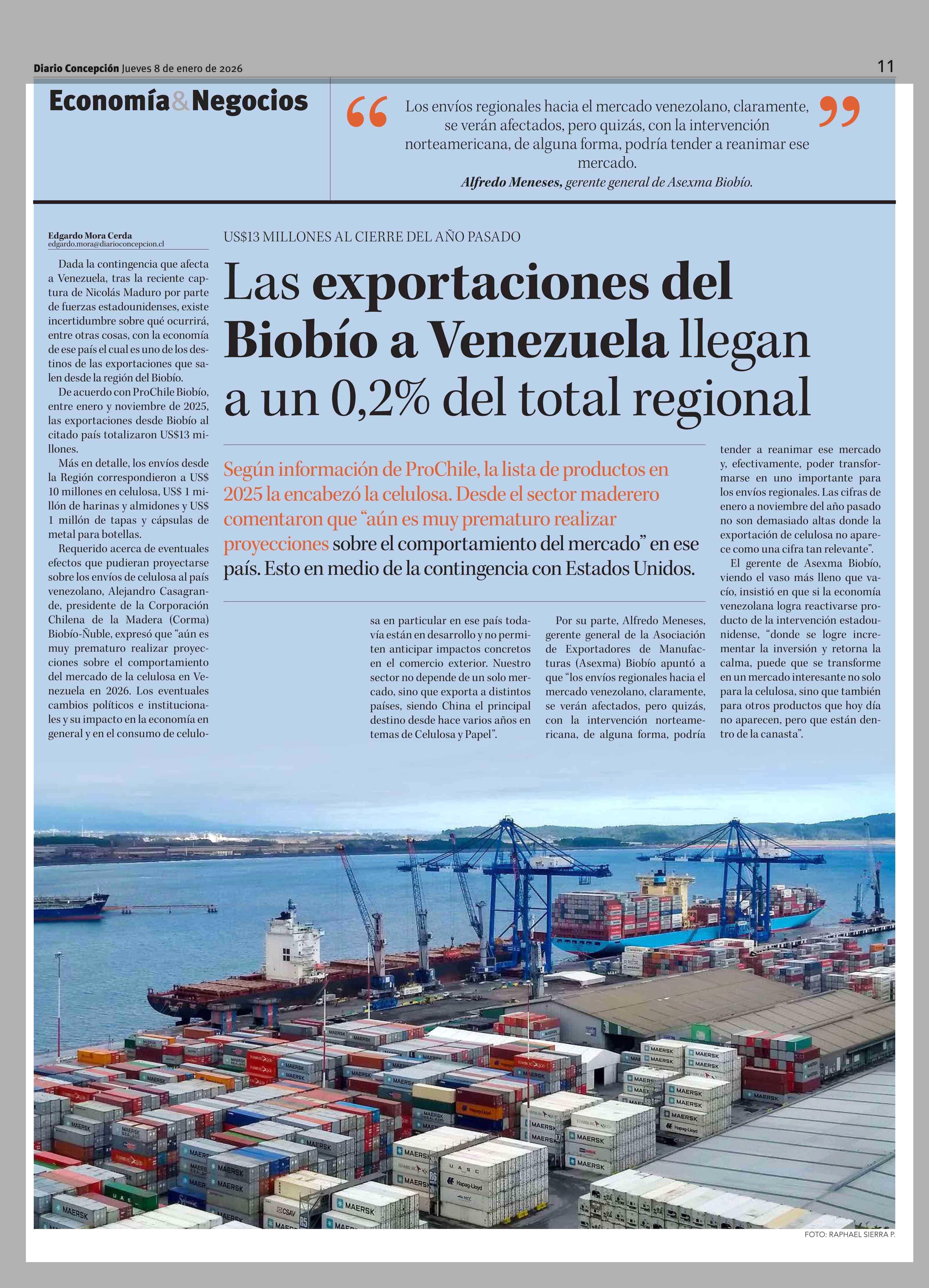 Título: Las exportaciones del Biobío a Venezuela llegan a un 0,2% del total regional