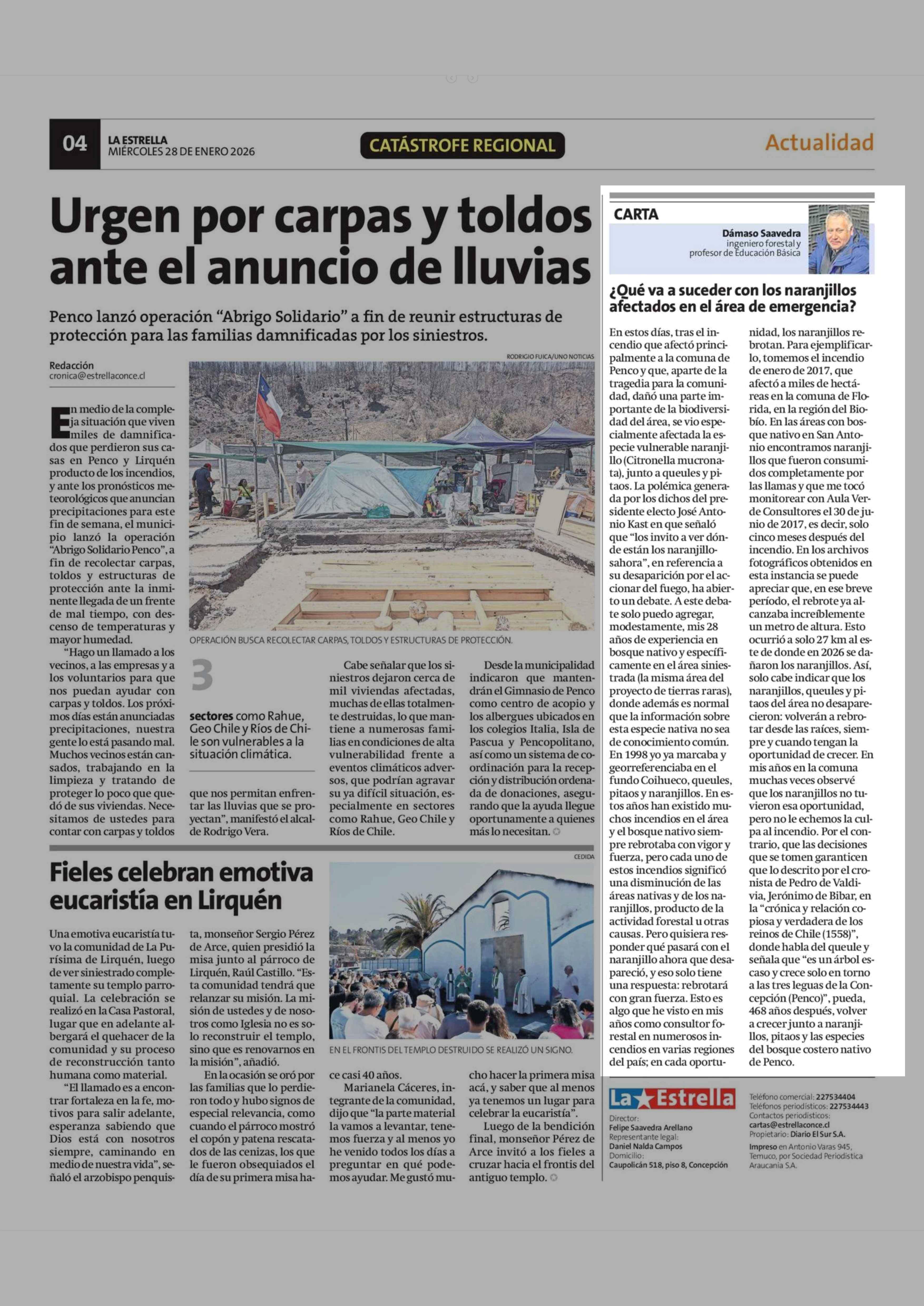 ¿Qué va a suceder con los naranjillos afectados en el área de emergencia? 28-01-2026 La Estrella de Concepción |