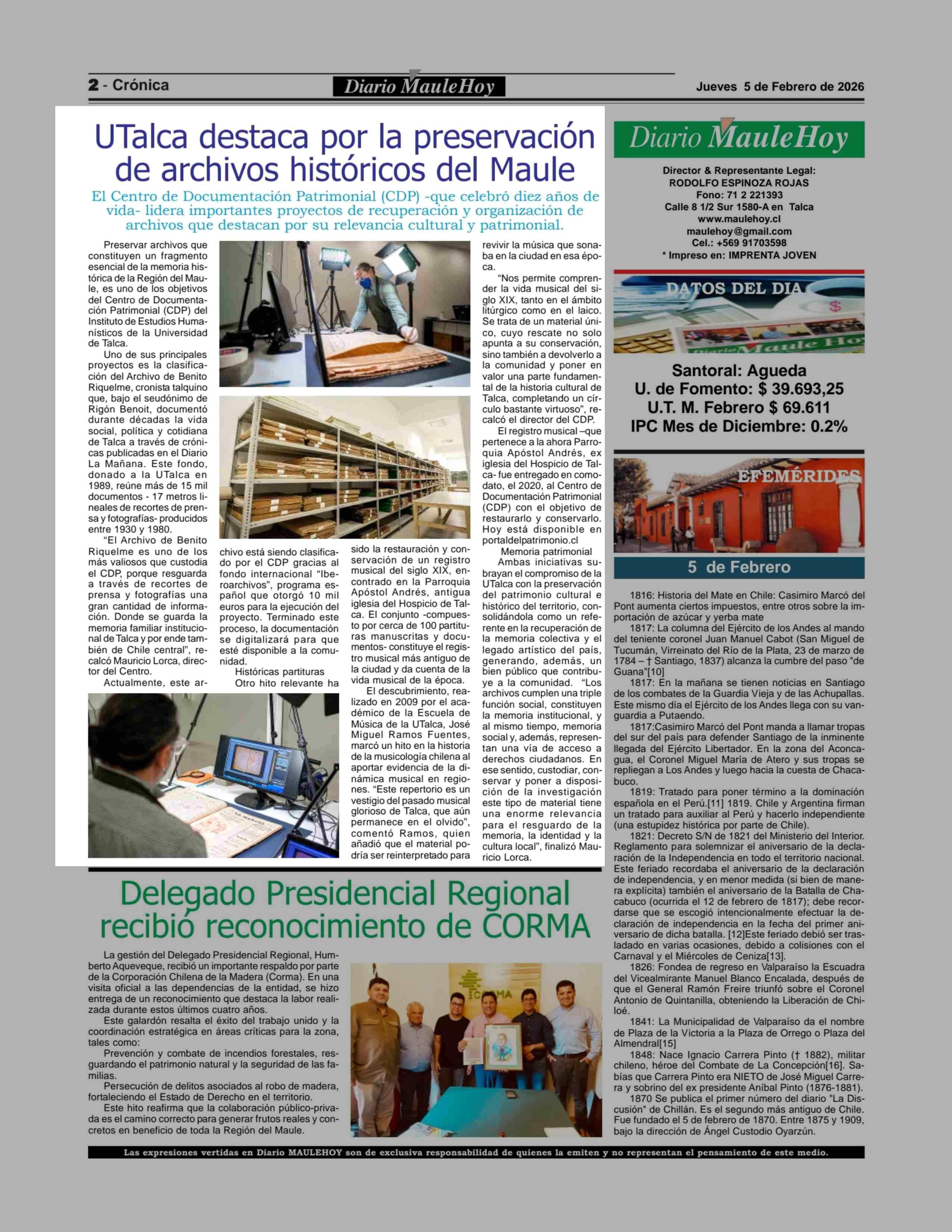 UTalca destaca por la preservación de archivos históricos del Maule 05-02-2026 Maule Hoy |