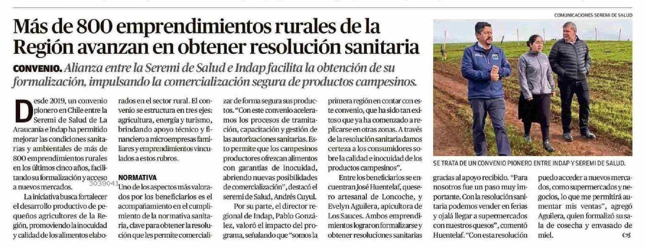 Más de 800 emprendimientos rurales de la Región avanzan en obtener resolución sanitaria 24-06-2025 El Austral de la Araucanía |
