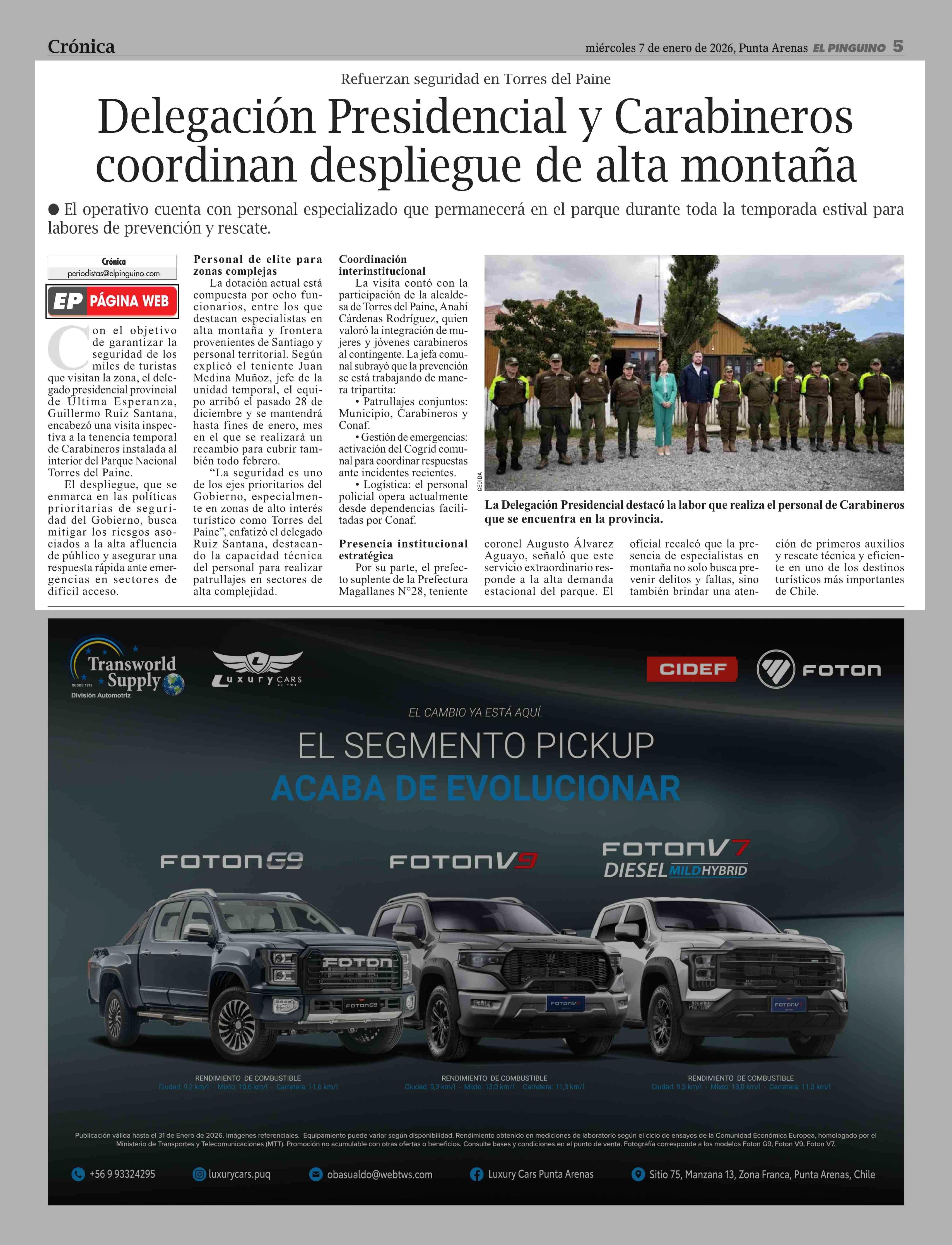 | Fecha: | 07-01-2026 | Sector: | Noticia general | Región: | Región de Magallanes y de la Antártica Chilena |