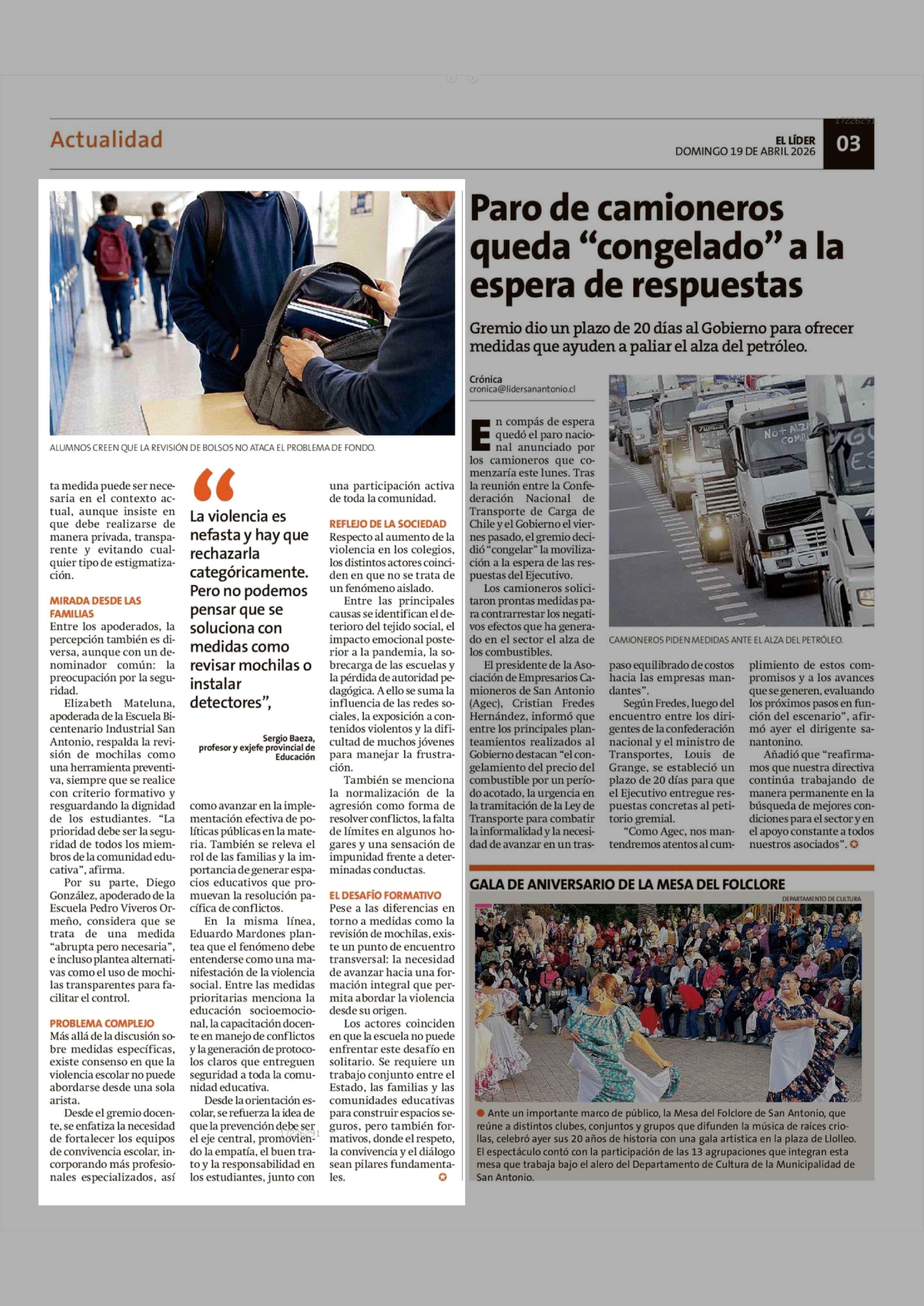 Título: Violencia escolar en la mira: revisión de mochilas divide opiniones en San Antonio