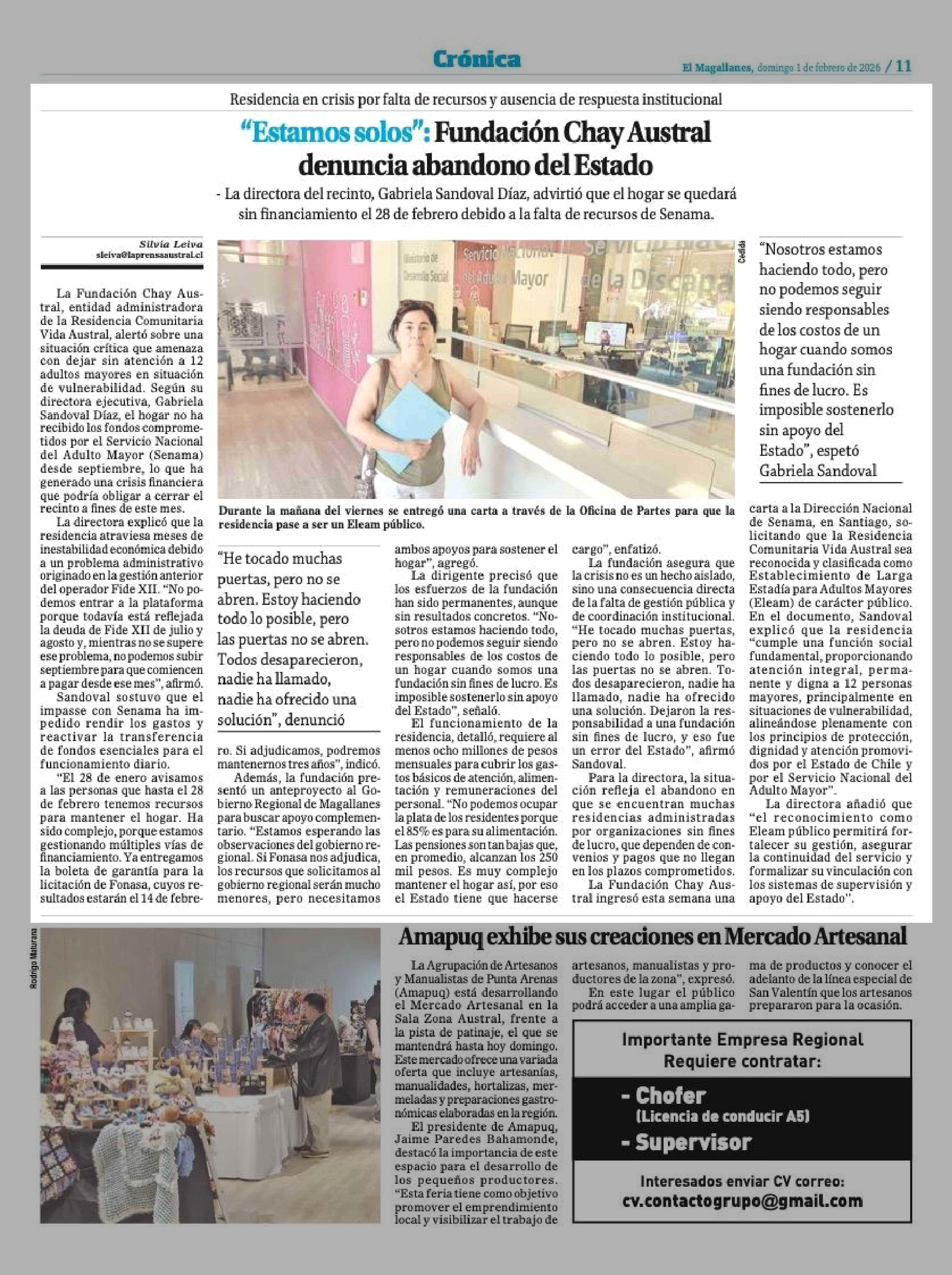 Título: "Estamos solos": Fundación Chay Austral denuncia abandono del Estado