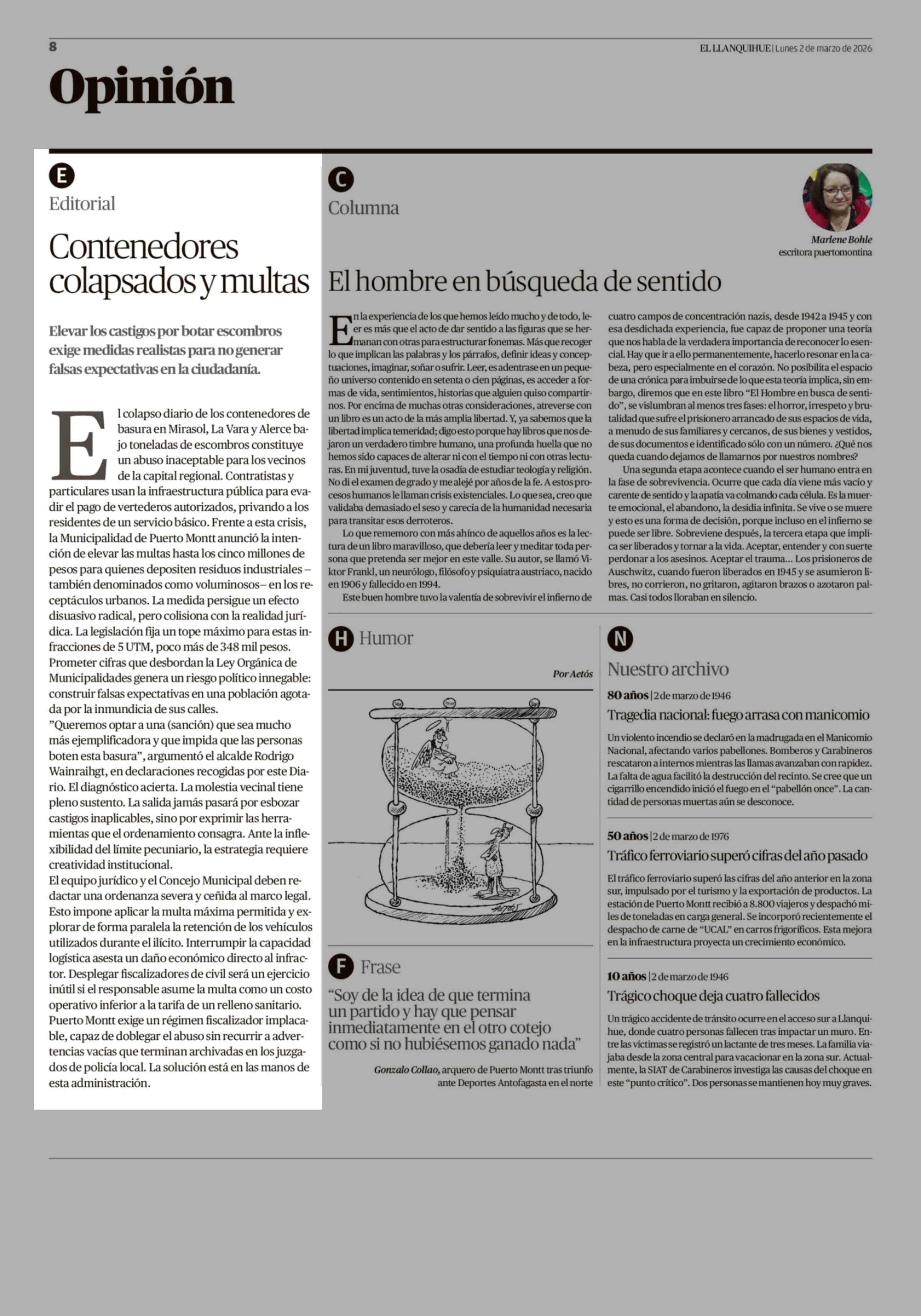 Fecha: 02-03-2026 Sector: Editorial Región: Región de Los Lagos