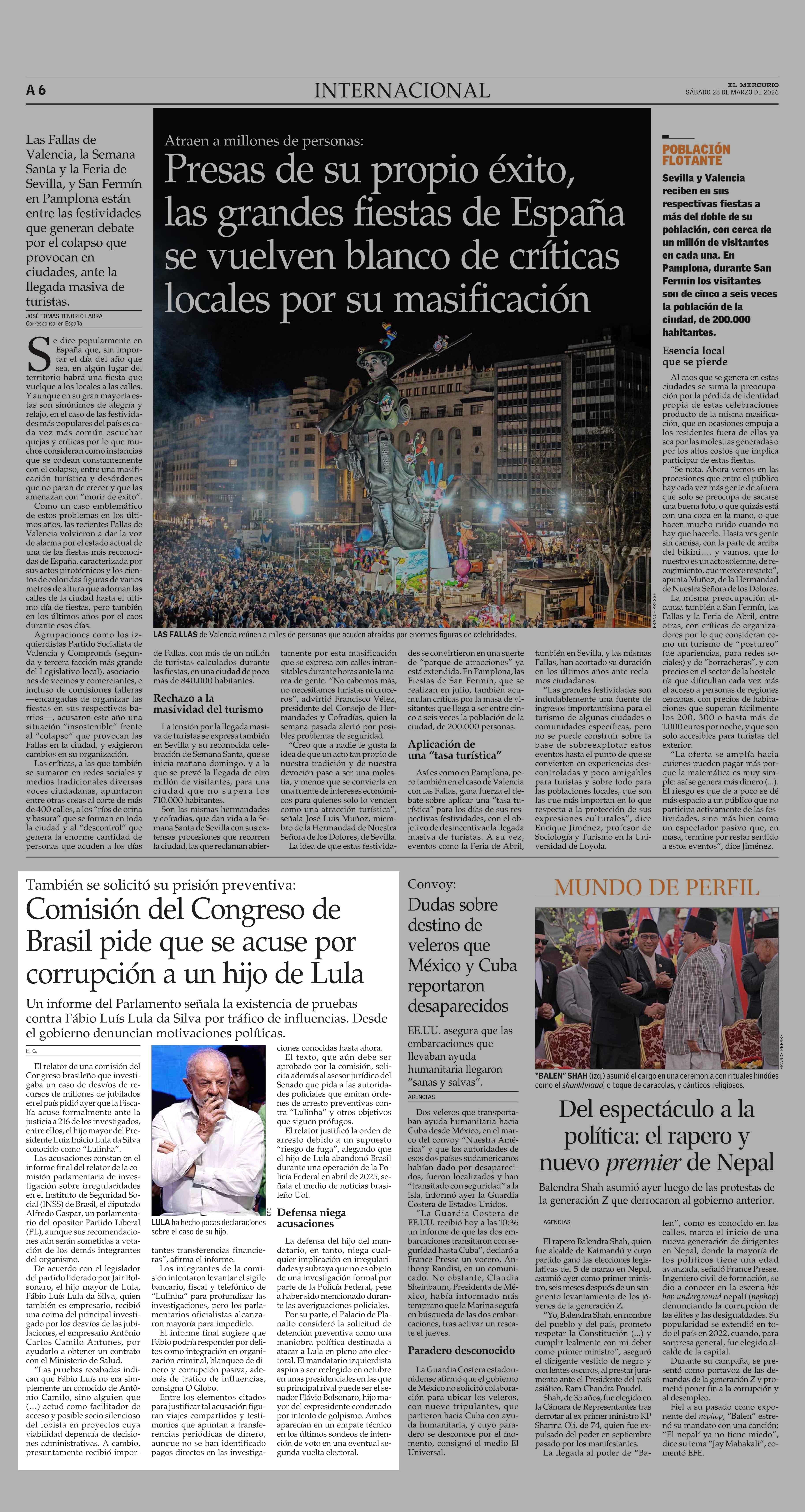 Comisión del Congreso de Brasil pide que se acuse por corrupción a un hijo de Lula 28-03-2026 El Mercurio |