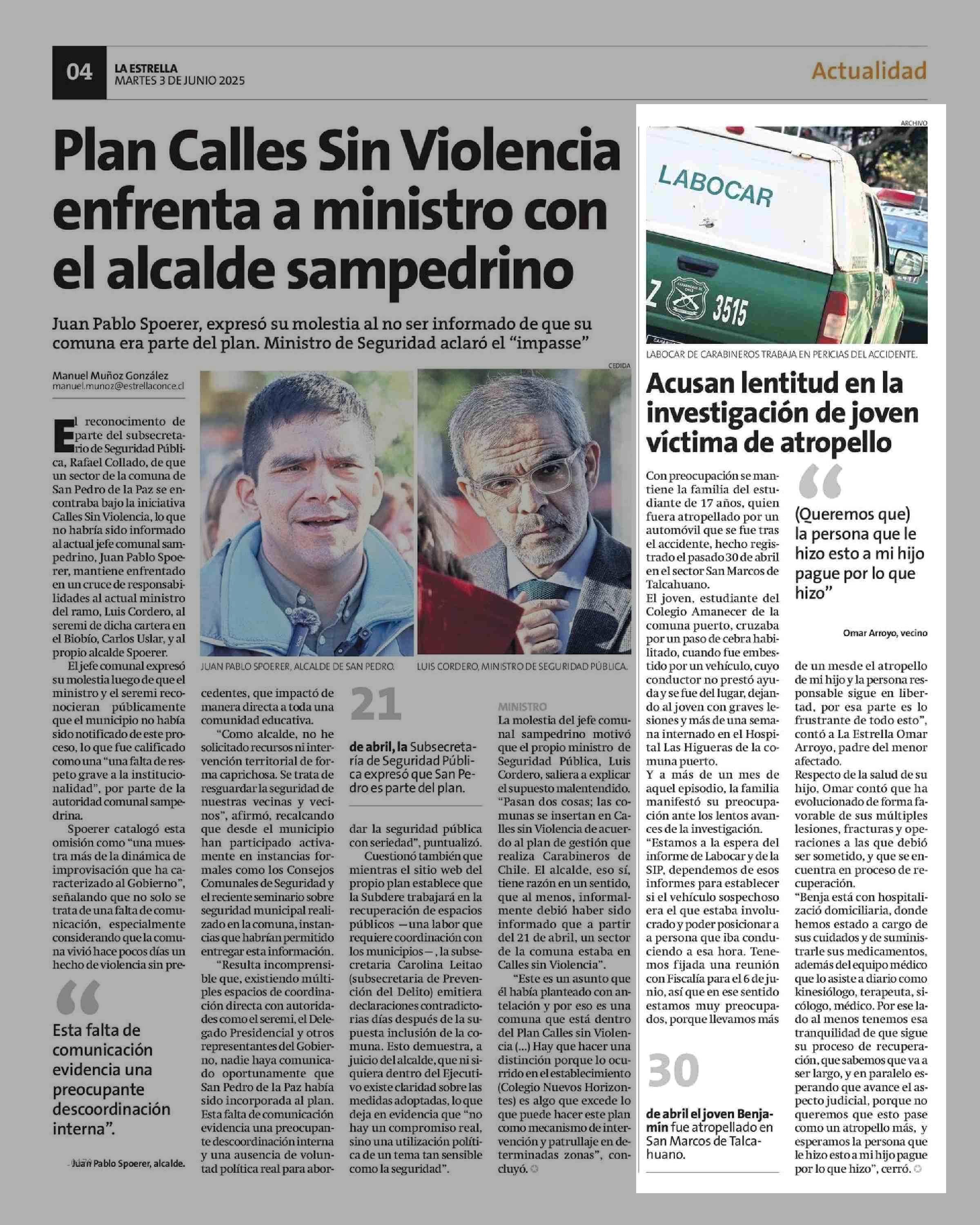 Acusan lentitud en la investigación de joven víctima de atropello 03-06-2025 La Estrella de Concepción |