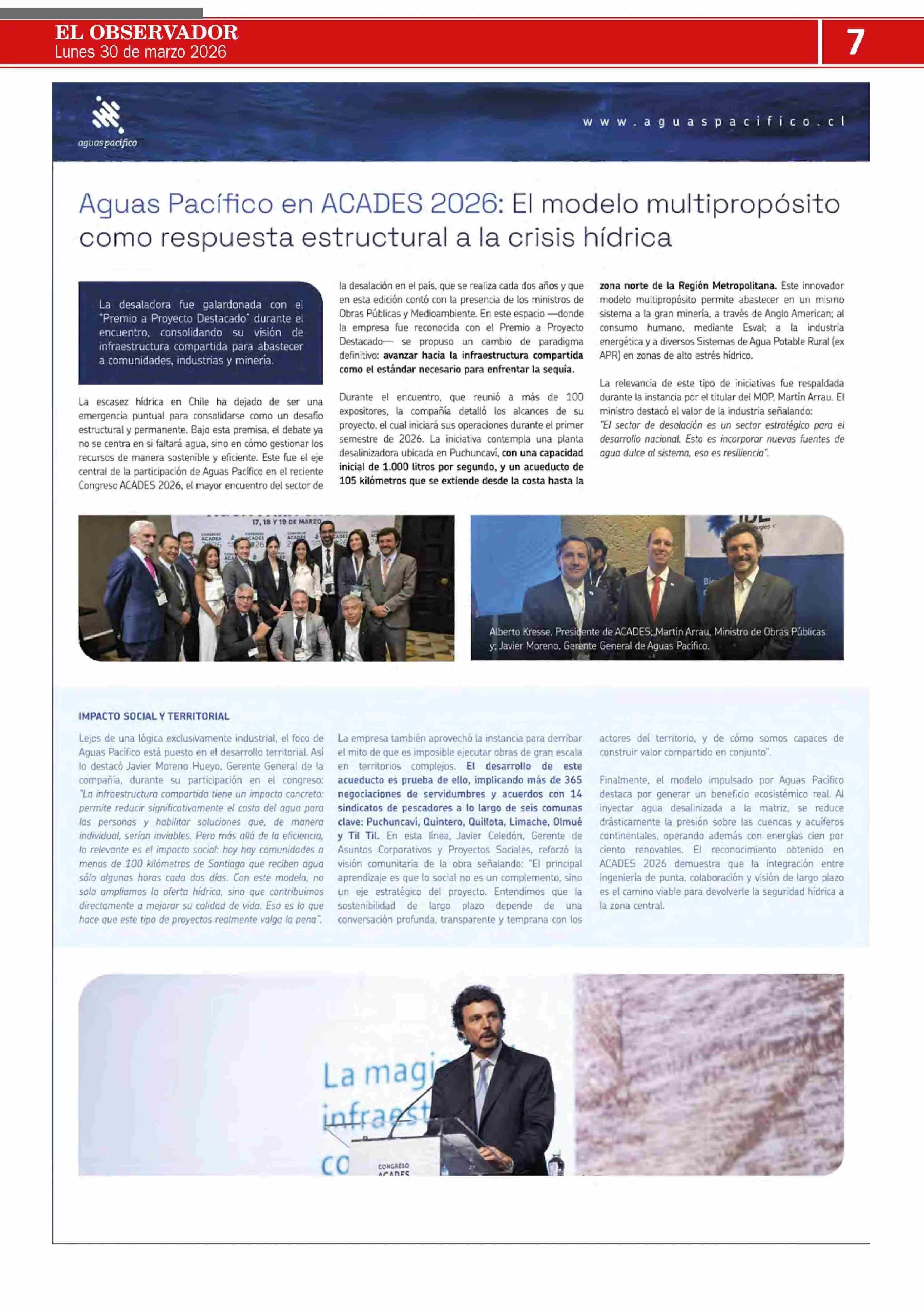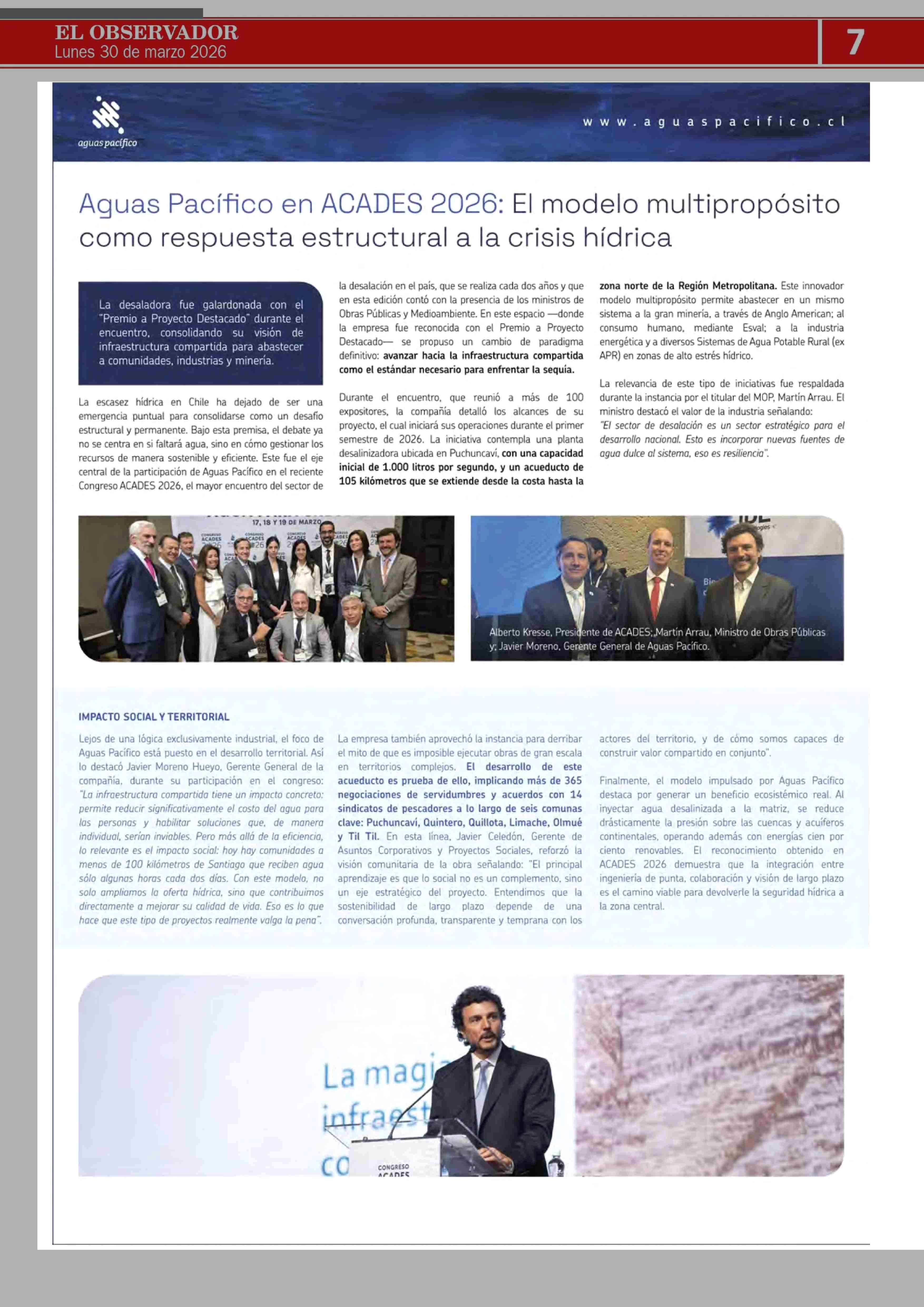 Título: Aguas Pacífico en ACADES 2026: El modelo multipropósito como respuesta estructural a la crisis hídrica