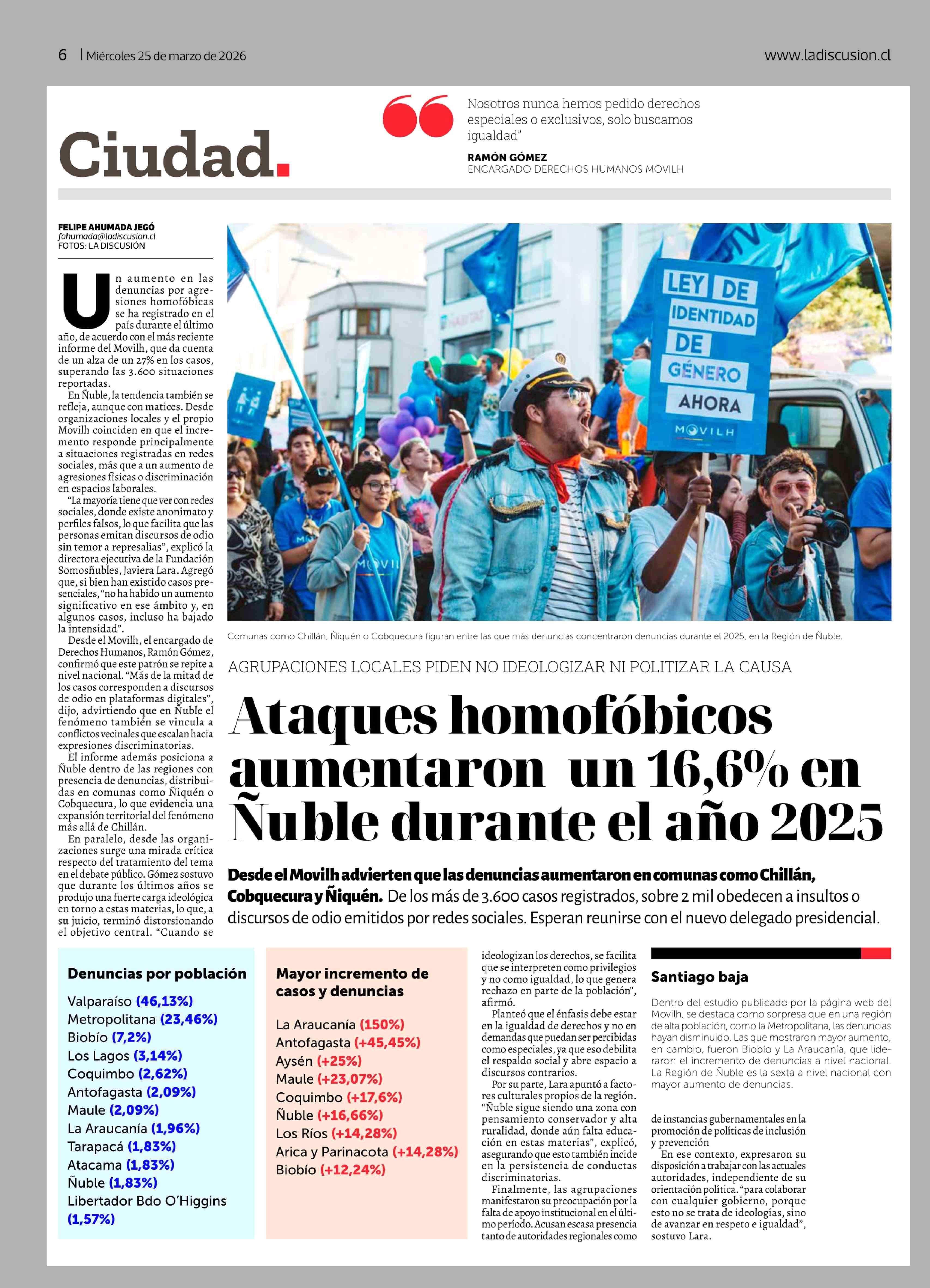 Título: Ataques homofóbicos aumentaron un 16,6% en Nuble durante el año 2025