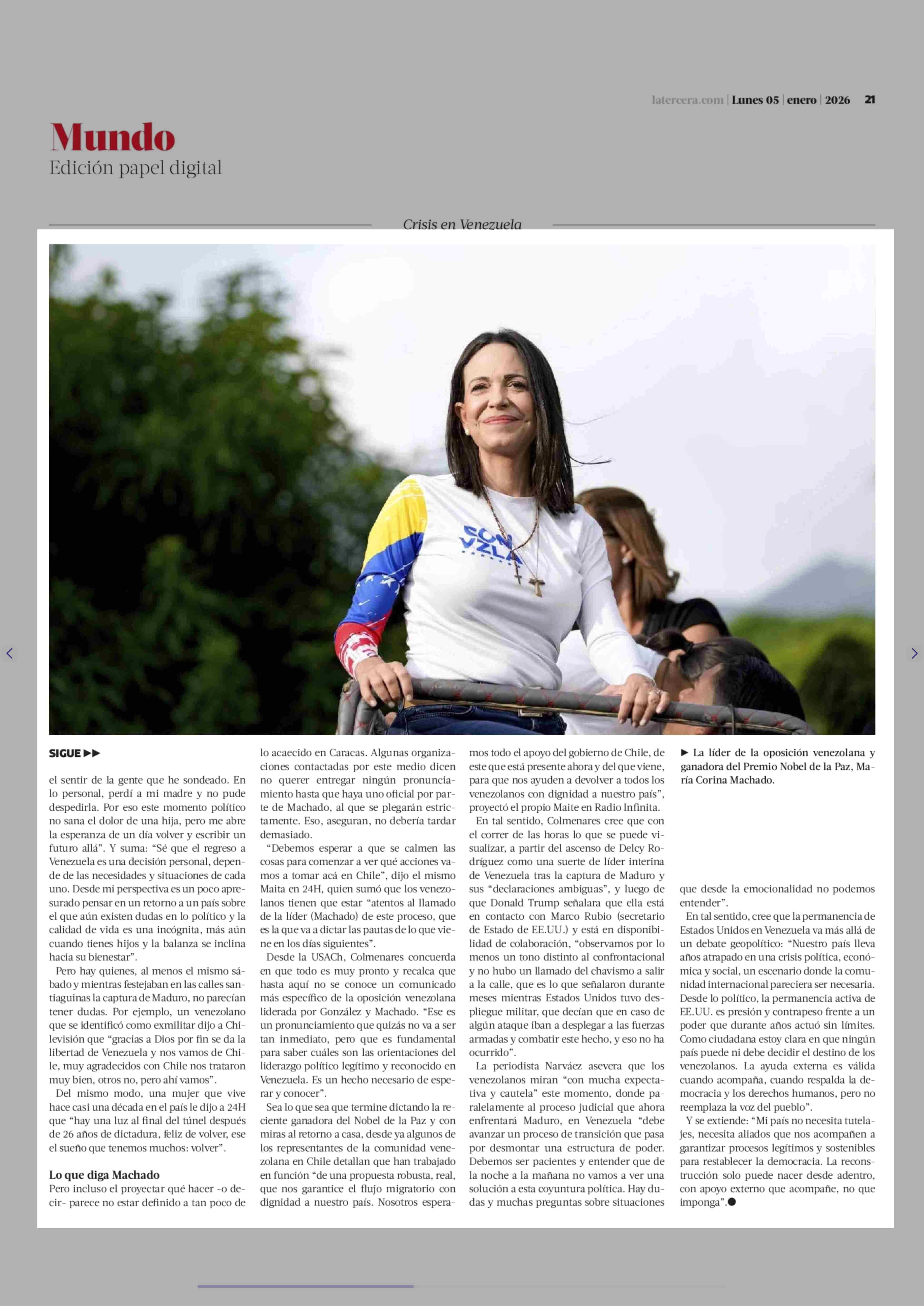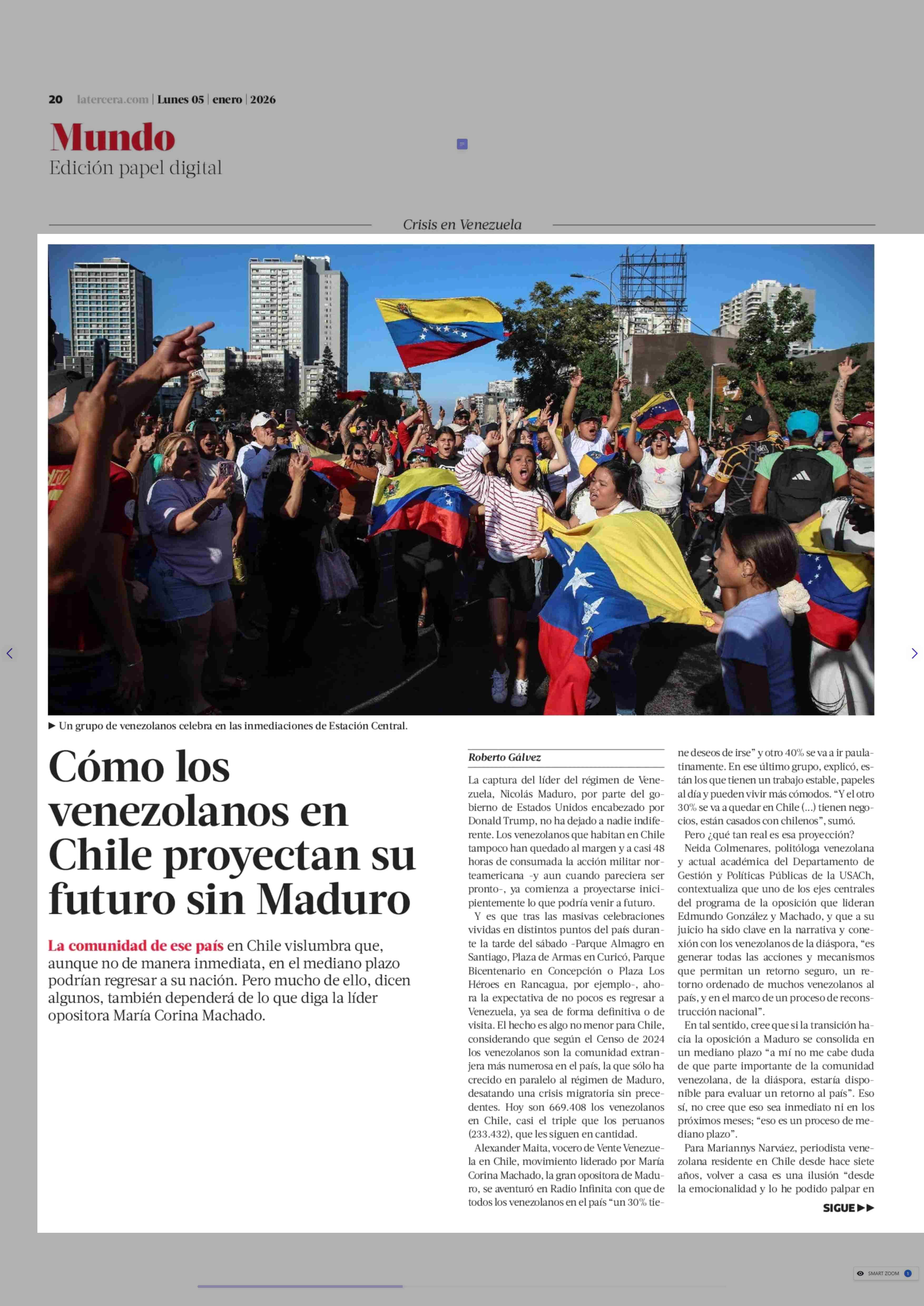 Cómo los venezolanos en Chile proyectan su futuro sin Maduro 05-01-2026 La Tercera |