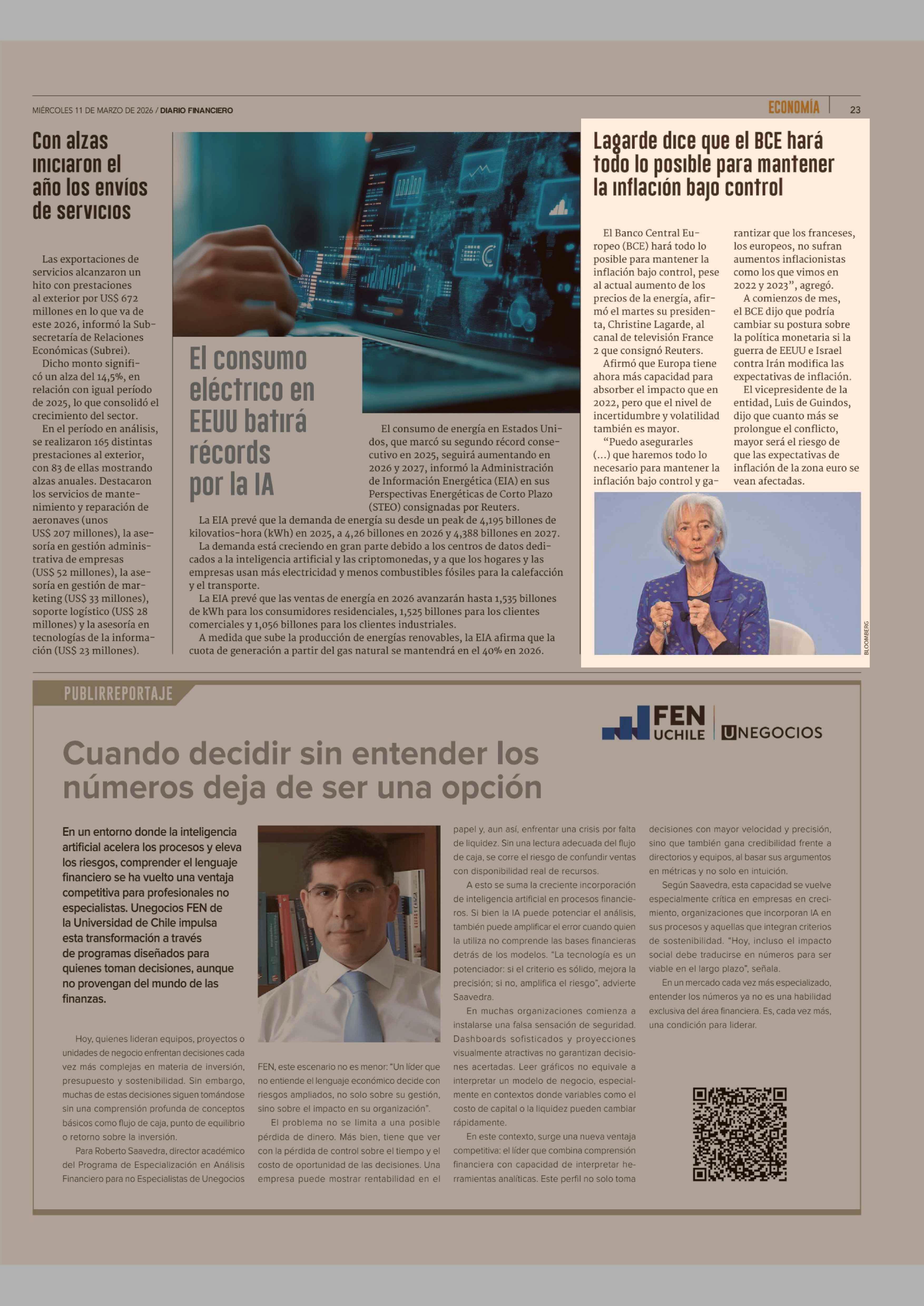 Lagarde dice que el BCE hará todo lo posible para mantener la inflación bajo control 11-03-2026 Diario Financiero |