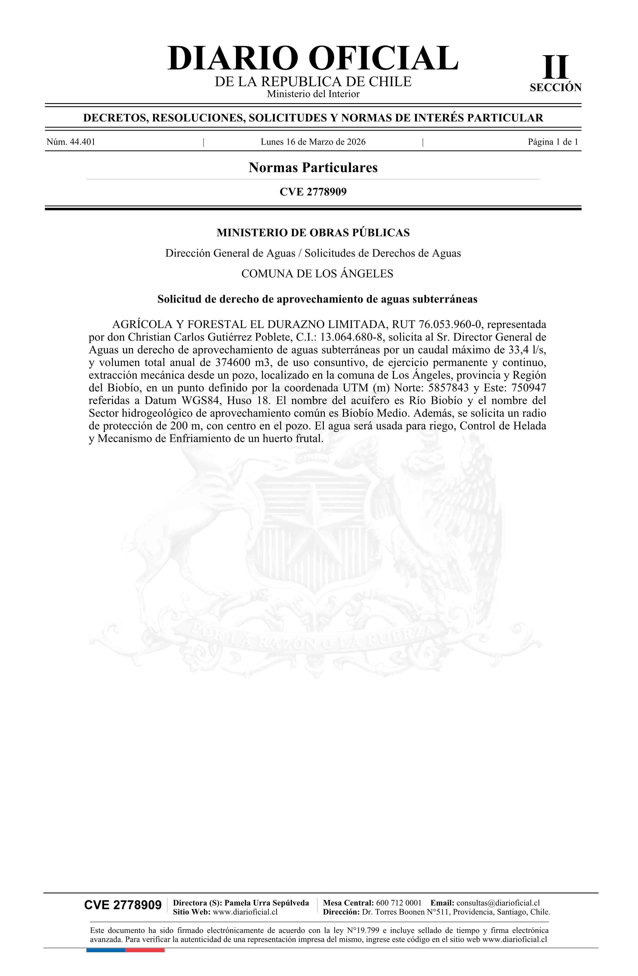 Título: Solicitud Agrícola y Forestal El Durazno Limitada