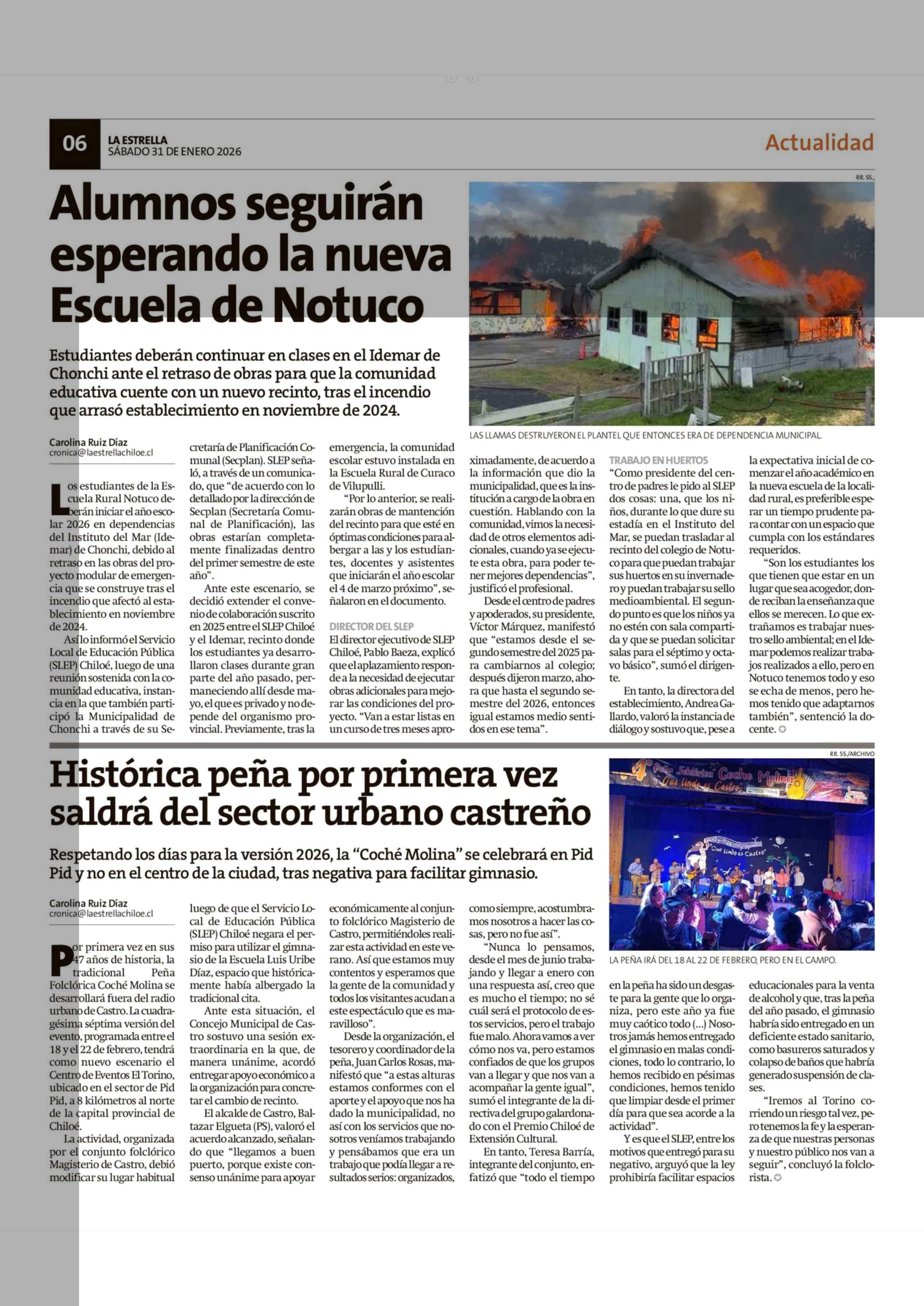 Alumnos seguirán esperando la nueva Escuela de Notuco 31-01-2026 La Estrella de Chiloé |