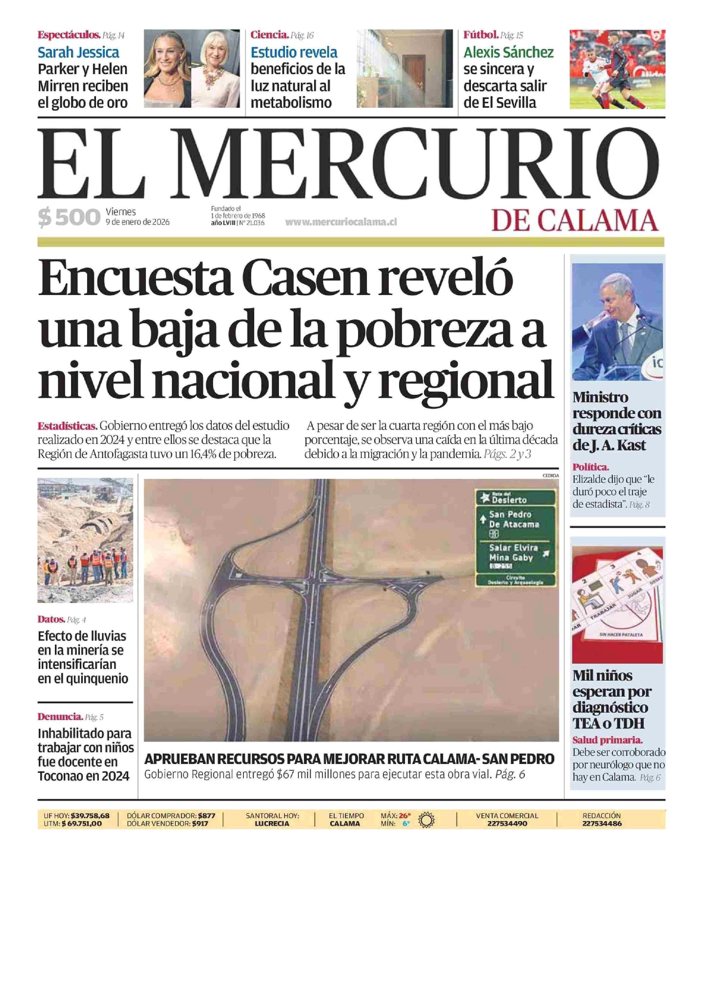 | Fecha: | 09-01-2026 | Sector: | Portada | Región: | Región de Antofagasta |