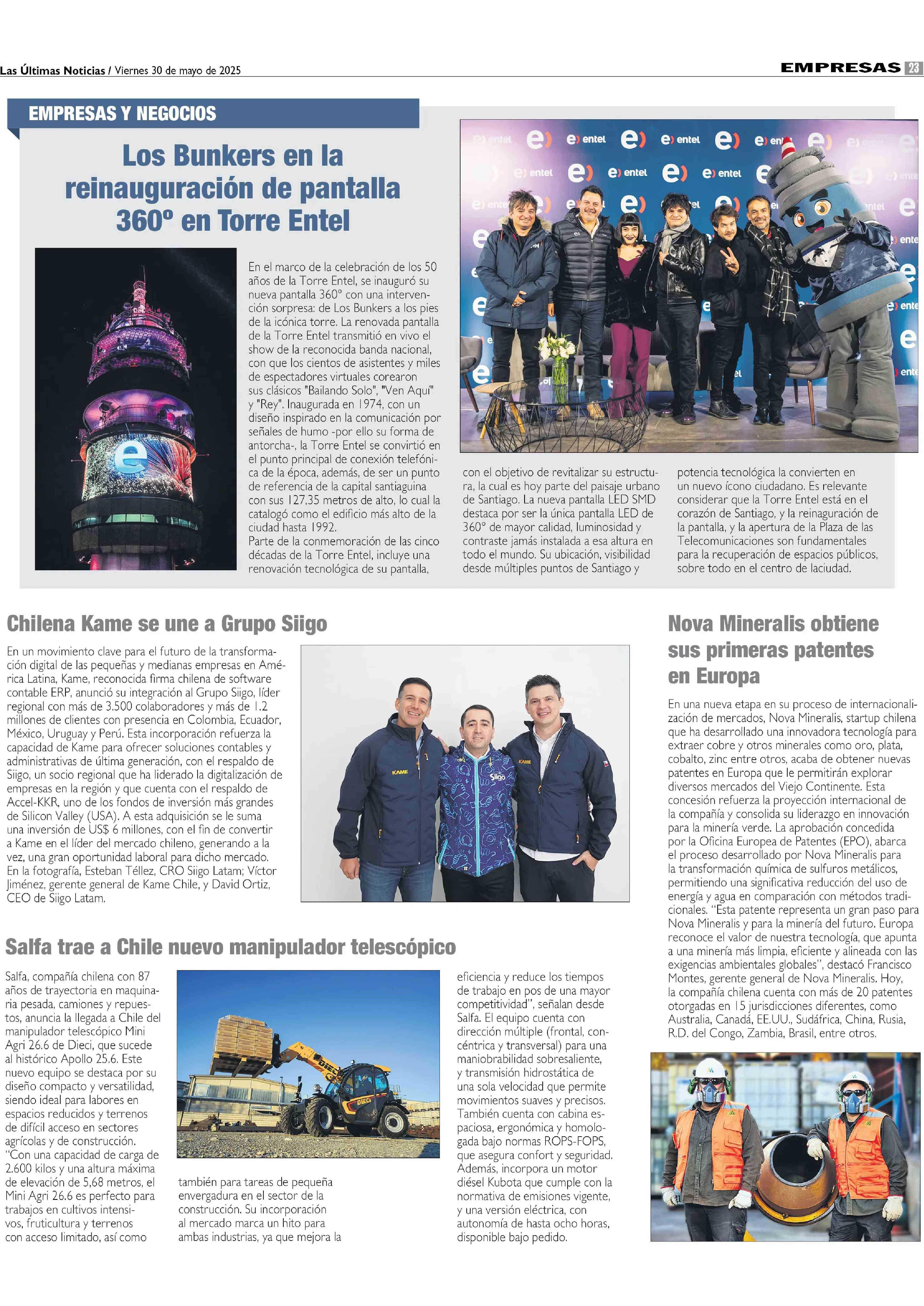 Nova Mineralis obtiene sus primeras patentes en Europa 30-05-2025 Las Últimas Noticias |