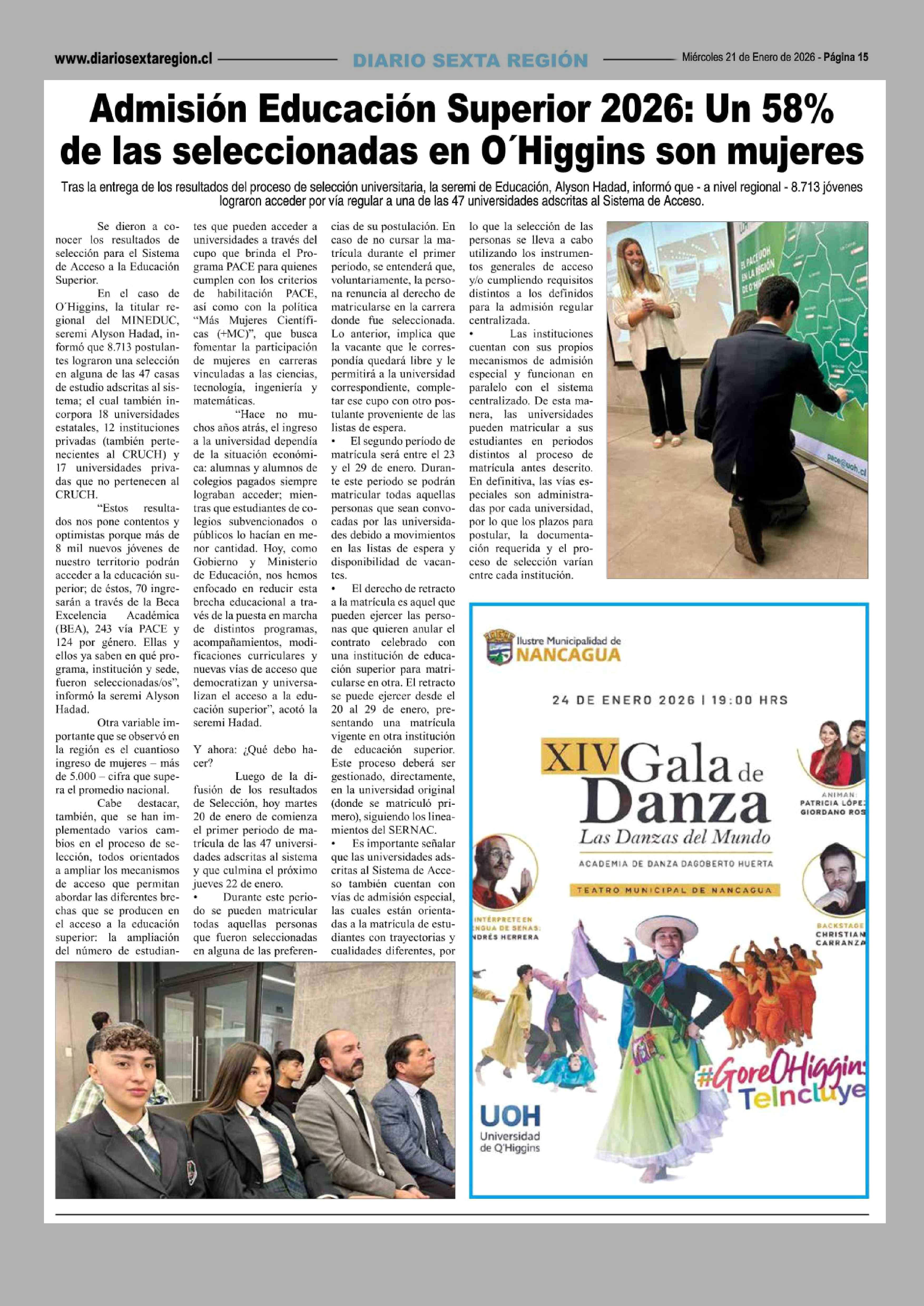 Título: Admisión Educación Superior 2026: Un 58% de las seleccionadas en O'Higgins son mujeres