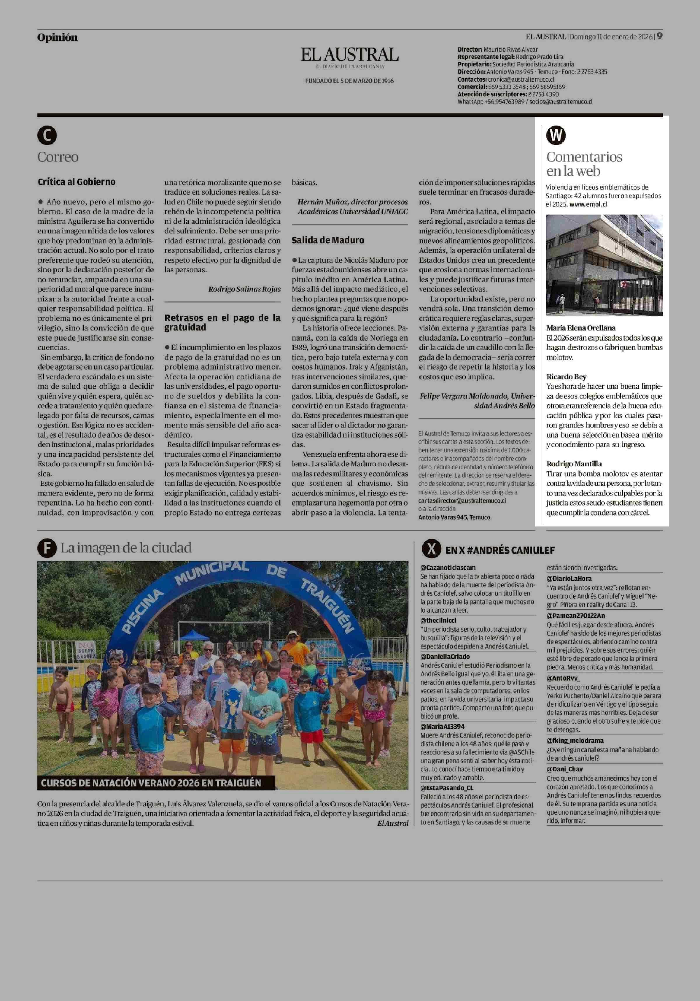 Comentarios en la web 11-01-2026 El Austral de la Araucanía |