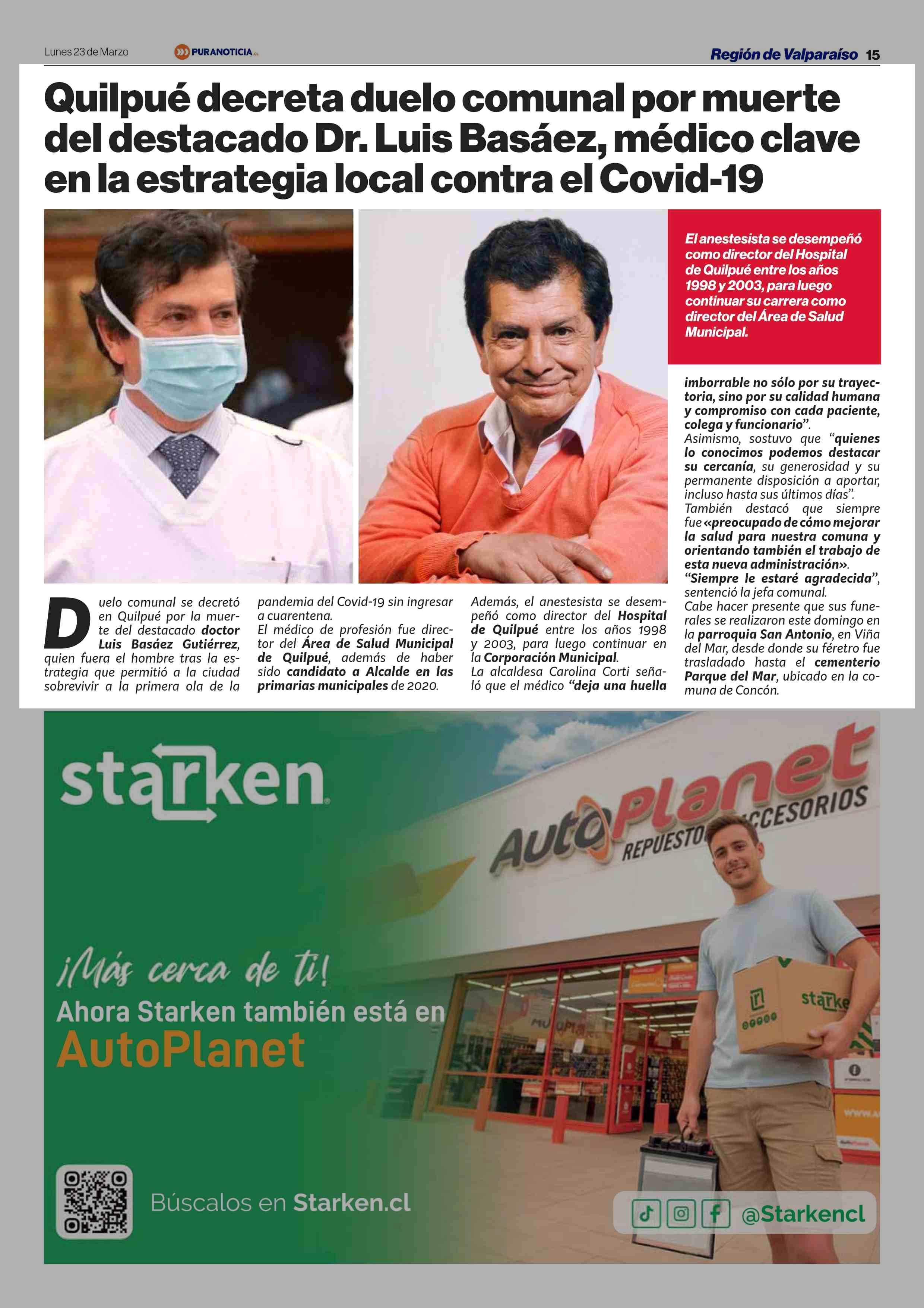 Título: Quilpué decreta duelo comunal por muerte del destacado Dr. Luis Basáez, médico clave en la estrategia local contra el Covid-19