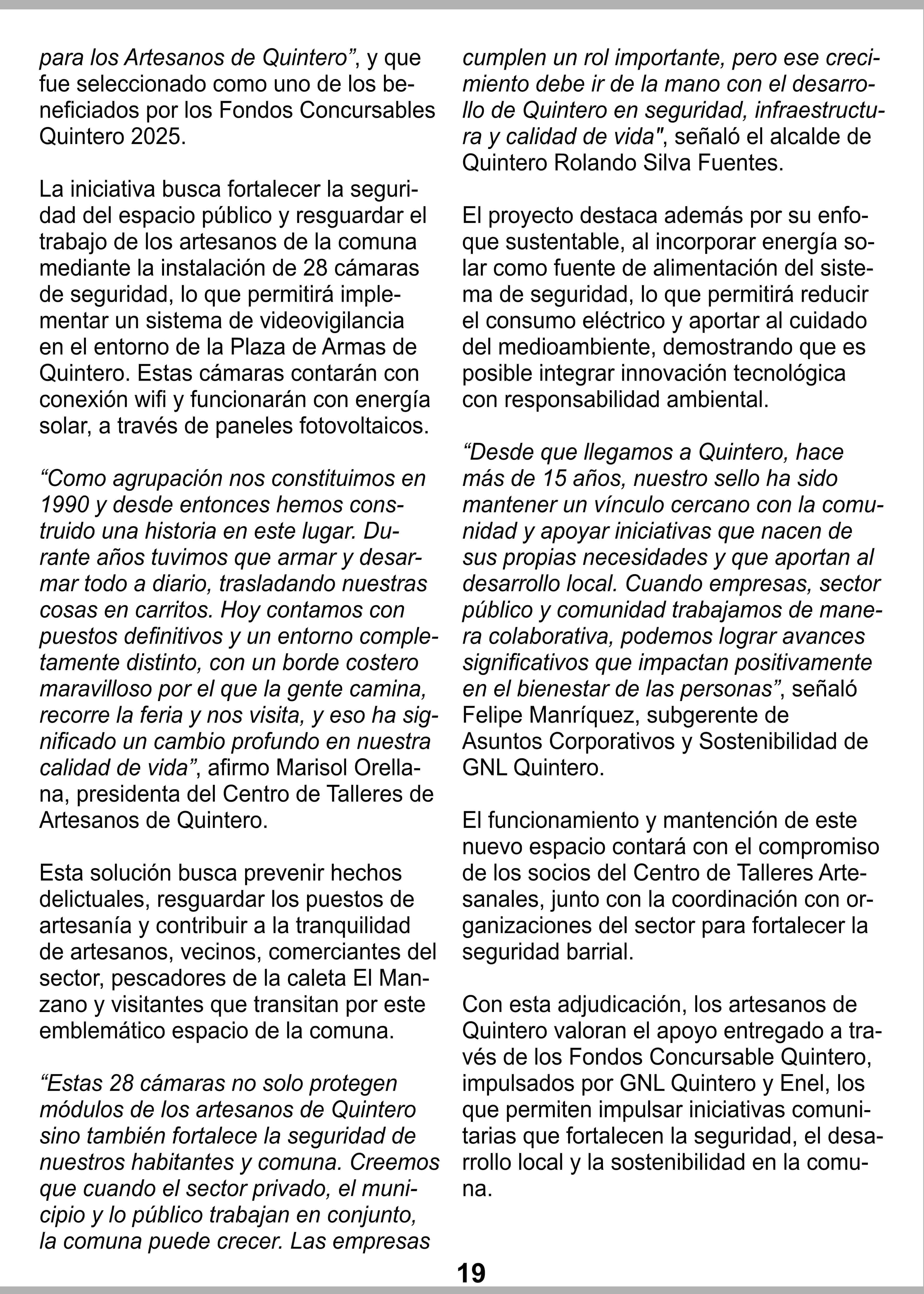 Artesanos de Quintero ganan Fondos Concursables para implementar sistema de seguridad sustentable 22-01-2026 Contraplano Reñaca-Concón-Quintero-Puchuncavi-Zapa |
