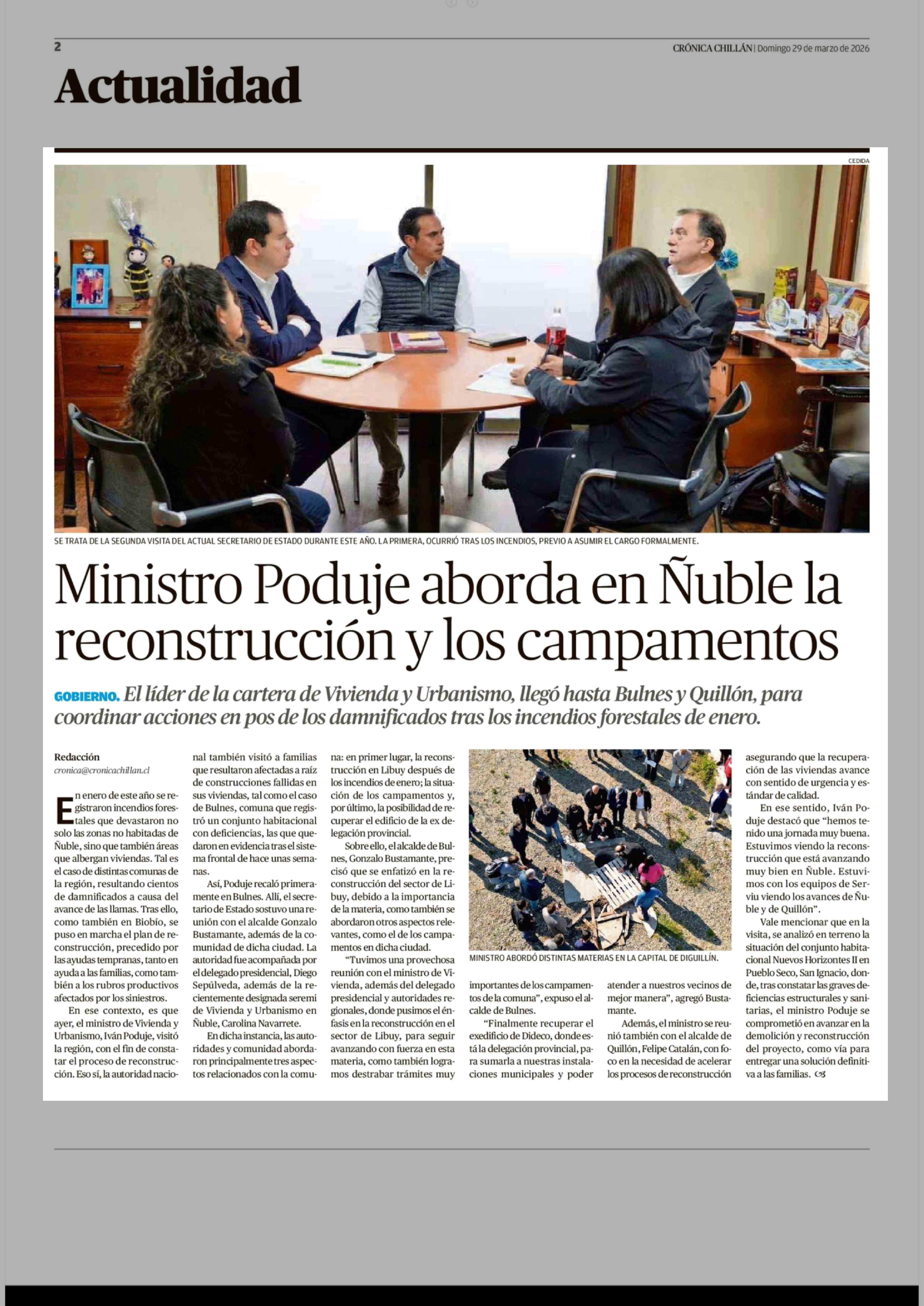 Ministro Poduje aborda en Ñuble la reconstrucción y los campamentos 29-03-2026 Crónica de Chillán |