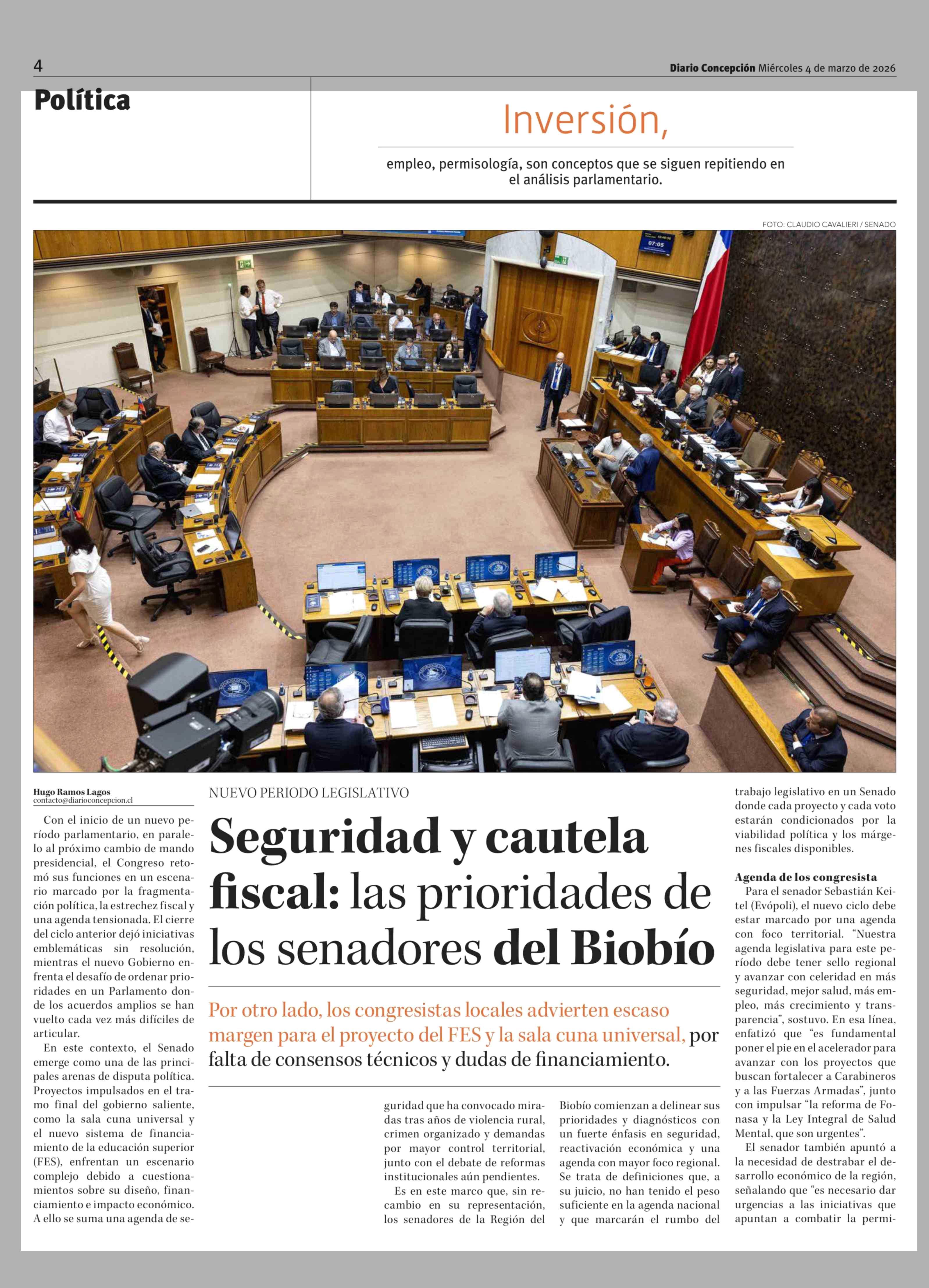 Seguridad y cautela fiscal: las prioridades de los senadores del Biobío 04-03-2026 Diario Concepción |